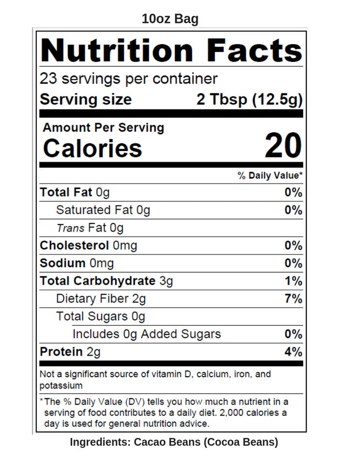 100% Pure Ground Cacao: Keto, Paleo, Non-GMO, Kosher, Sugar-free, Dairy-free, & Gluten-free.