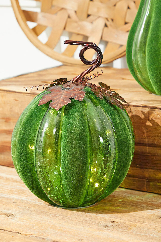 Decorator's Warehouse 12" Velvet & Glass Light Up Pumpkin - Green