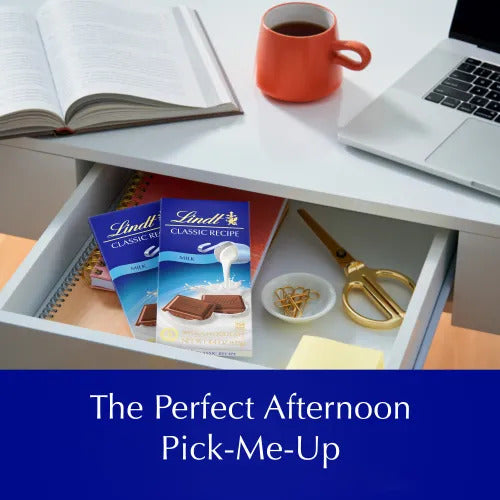 Indulge in the smooth, creamy taste of a Lindt CLASSIC RECIPE Milk Chocolate Bar. Expertly crafted, this milk chocolate candy bar offers classic rich flavor and smooth texture. Enjoy this indulgent treat after dinner, or use these milk chocolate bars in your baking for delicious results. Made with the finest ingredients, this refined candy bar also makes a delicious gift for any chocolate lover. Each bar is portioned into perfect bite-sized pieces, making it easy to share or enjoy a few pieces anywhere. Lindt chocolate embodies the passion and expert craftsmanship of Lindt Master Chocolatiers for a distinctly smooth melting chocolate experience in every bite.