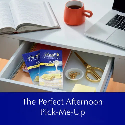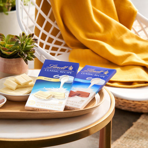 Indulge in the smooth, creamy taste of the Lindt CLASSIC RECIPE White Chocolate Bar. Expertly crafted with premium Lindt white chocolate, this white chocolate candy bar is simple and delicious with a refined finish so you can savor the rich taste. Enjoy this indulgent treat after dinner, or use these white chocolate bars in your baking for delicious results. These classic white chocolate bars are also perfect as gifts for the chocolate aficionados in your life. Each bar is portioned into perfect bite-sized pieces, making it easy to share or enjoy a few pieces anywhere. Lindt chocolate embodies the passion and expert craftsmanship of the Lindt Master Chocolatiers for a distinctly smooth melting chocolate experience in every bite.