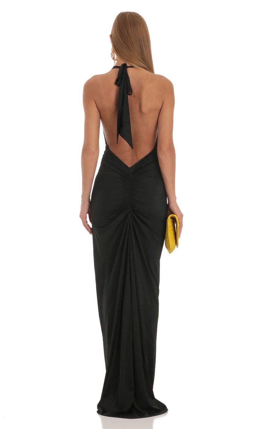 Lucy in the Sky Gathered Back Halter BodyCon Maxi Dress in Black