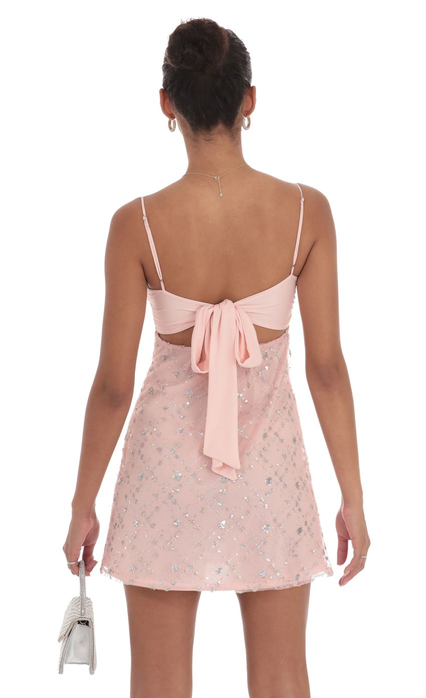 Lucy in the Sky Glitter Sequin Babydoll Dress in Pink