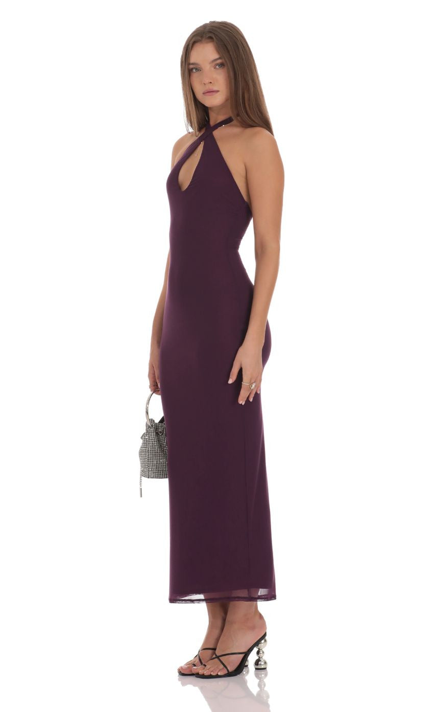 Lucy in the Sky Halter Bodycon Maxi Dress in Purple