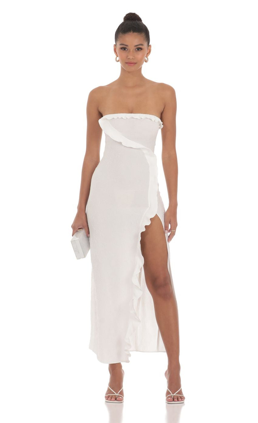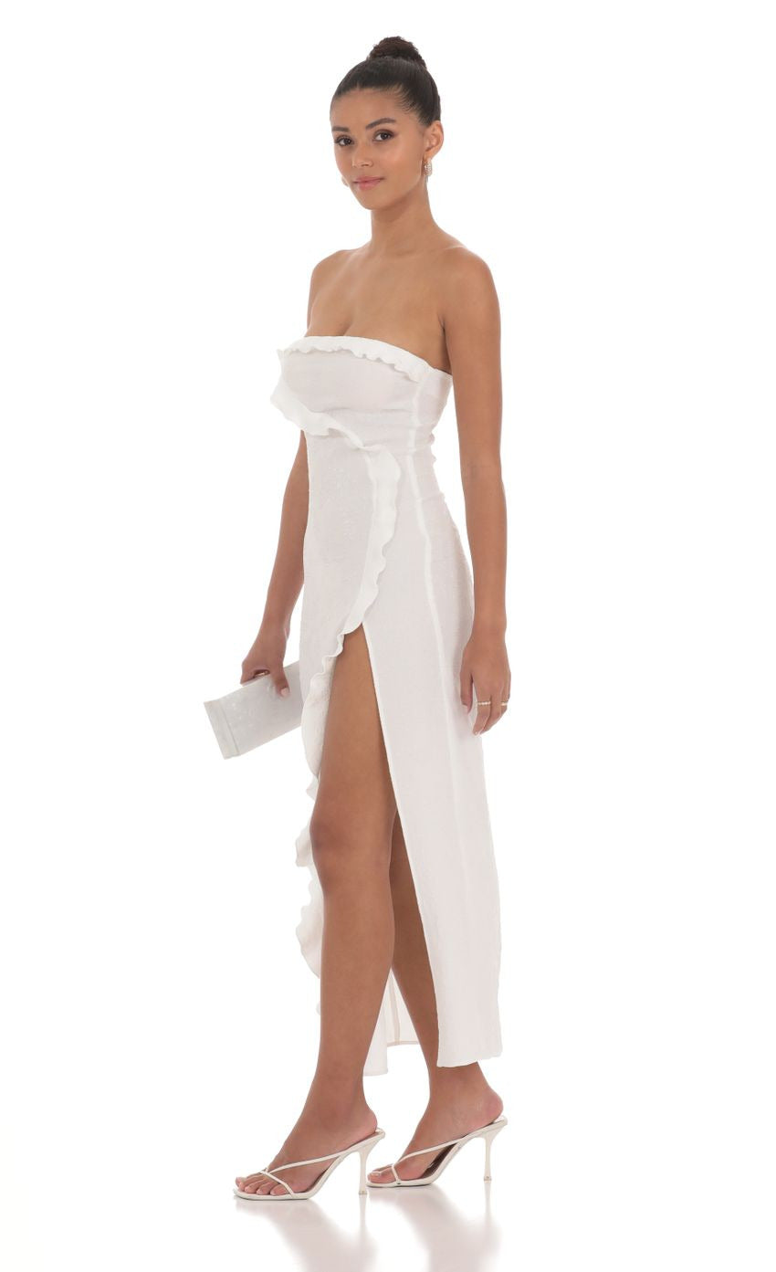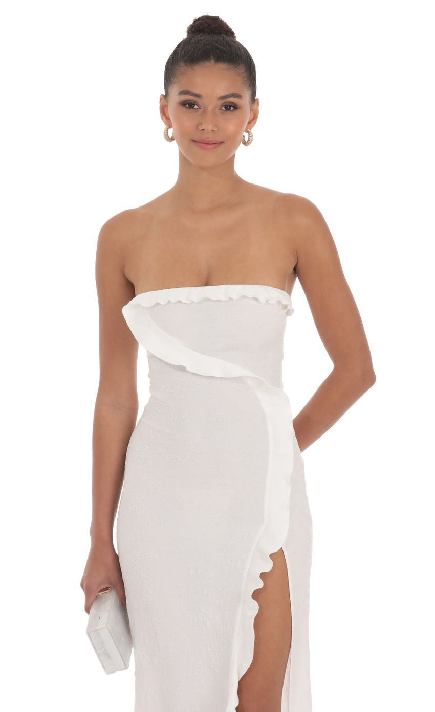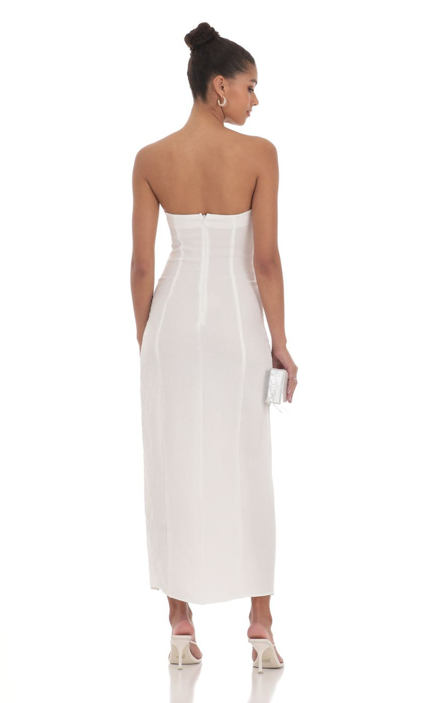 Lucy in the Sky Jacquard Strapless Maxi Dress in White