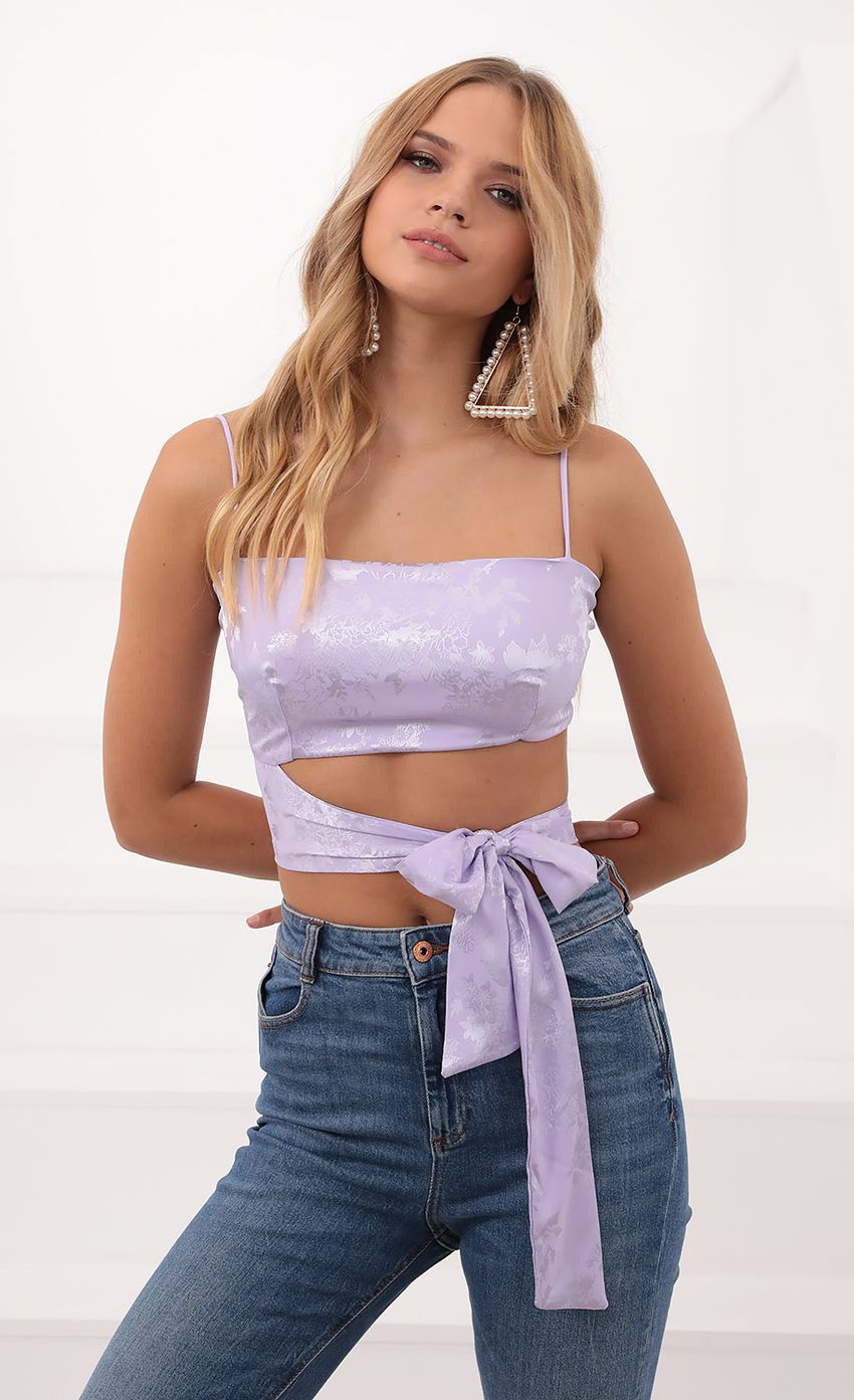 Lucy in the Sky Jacquard Wrap Top in Lavender