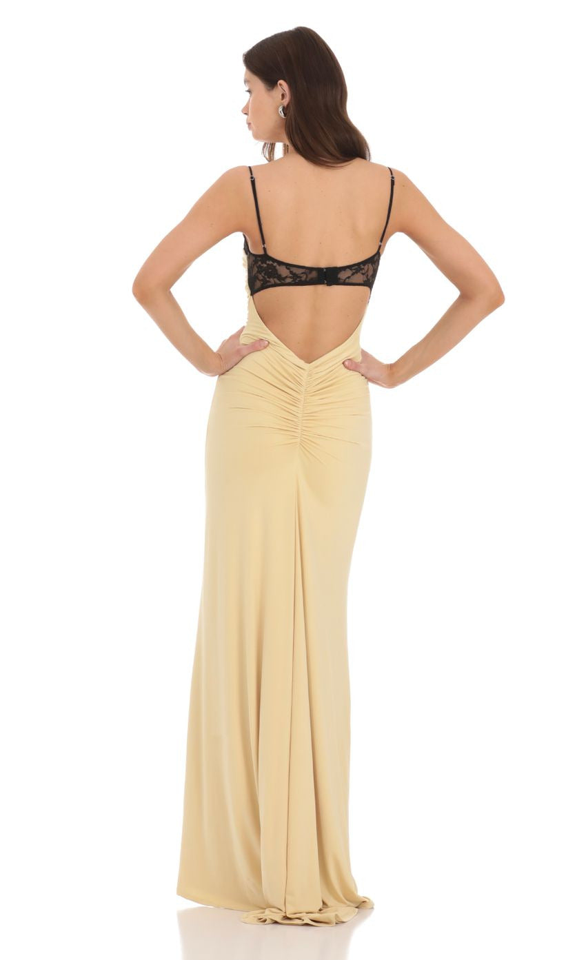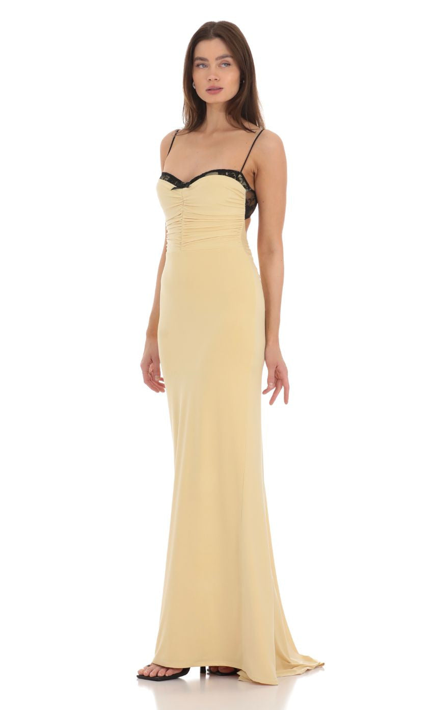 Lucy in the Sky Lace Bust Open Back Maxi Dress in Yellow