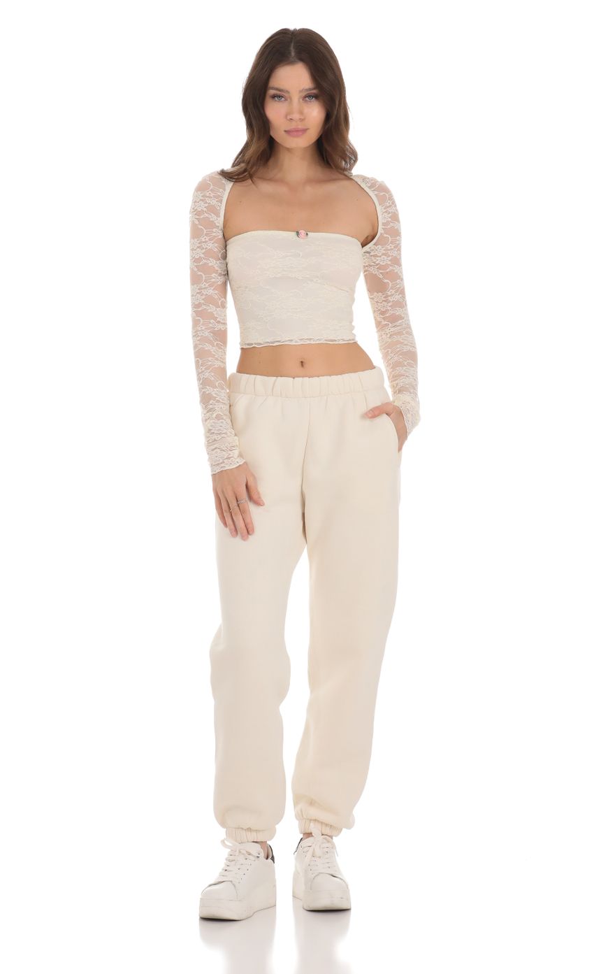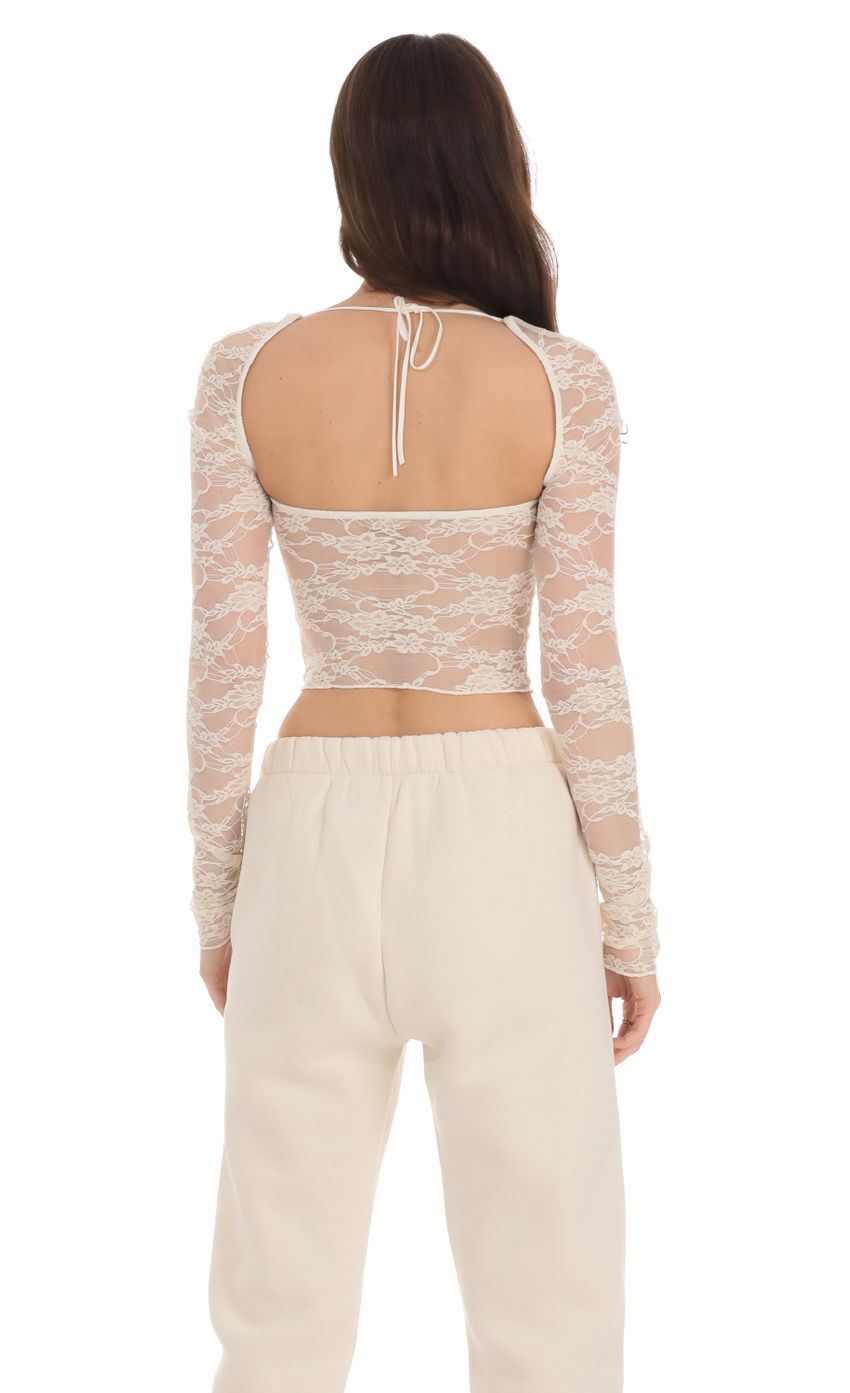 Lucy in the Sky Lace Long Sleeve Top in Cream