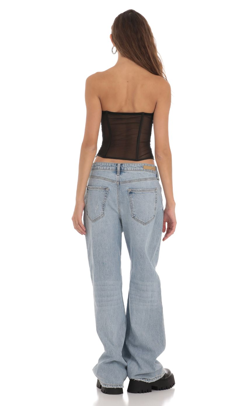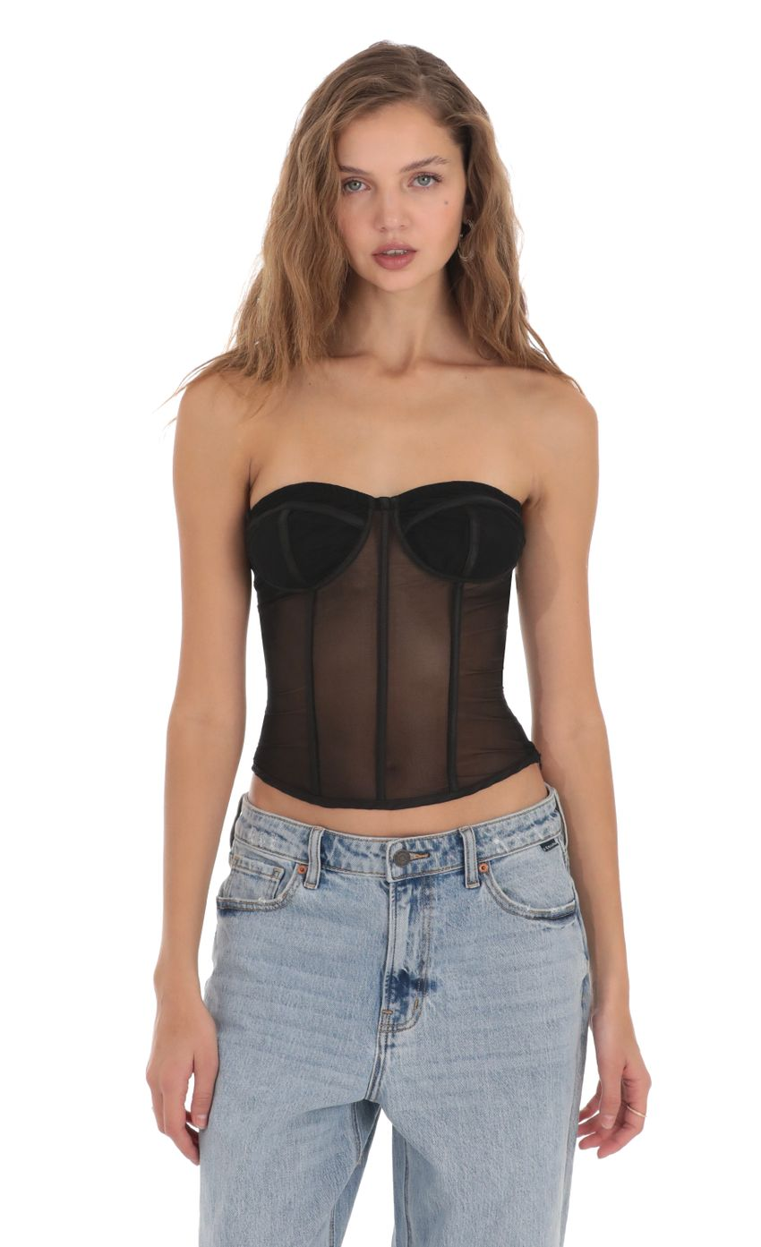Lucy in the Sky Mesh Corset Strapless Top in Black
