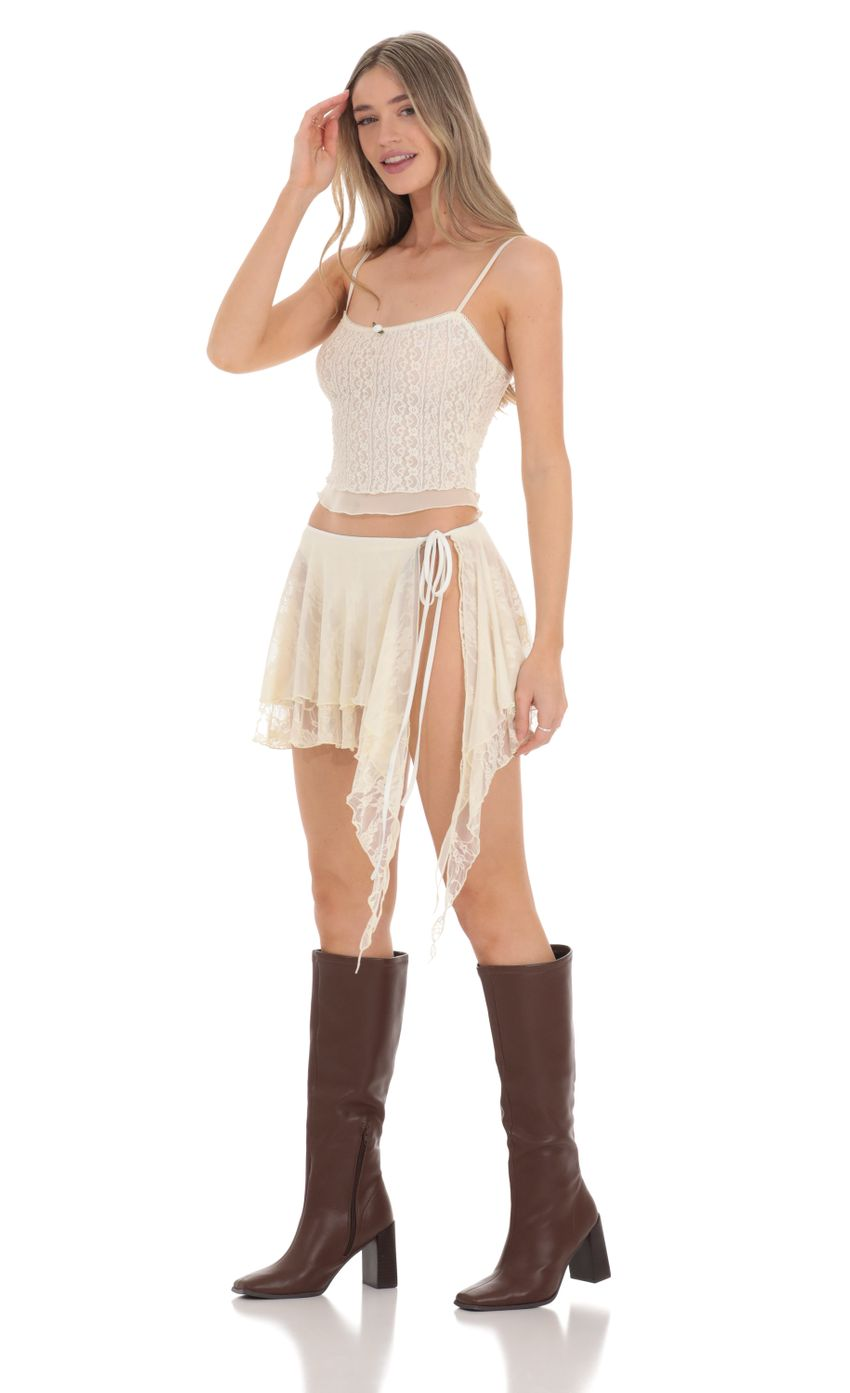 Lucy in the Sky Mesh Lace Wrap Skirt in Pastel Yellow