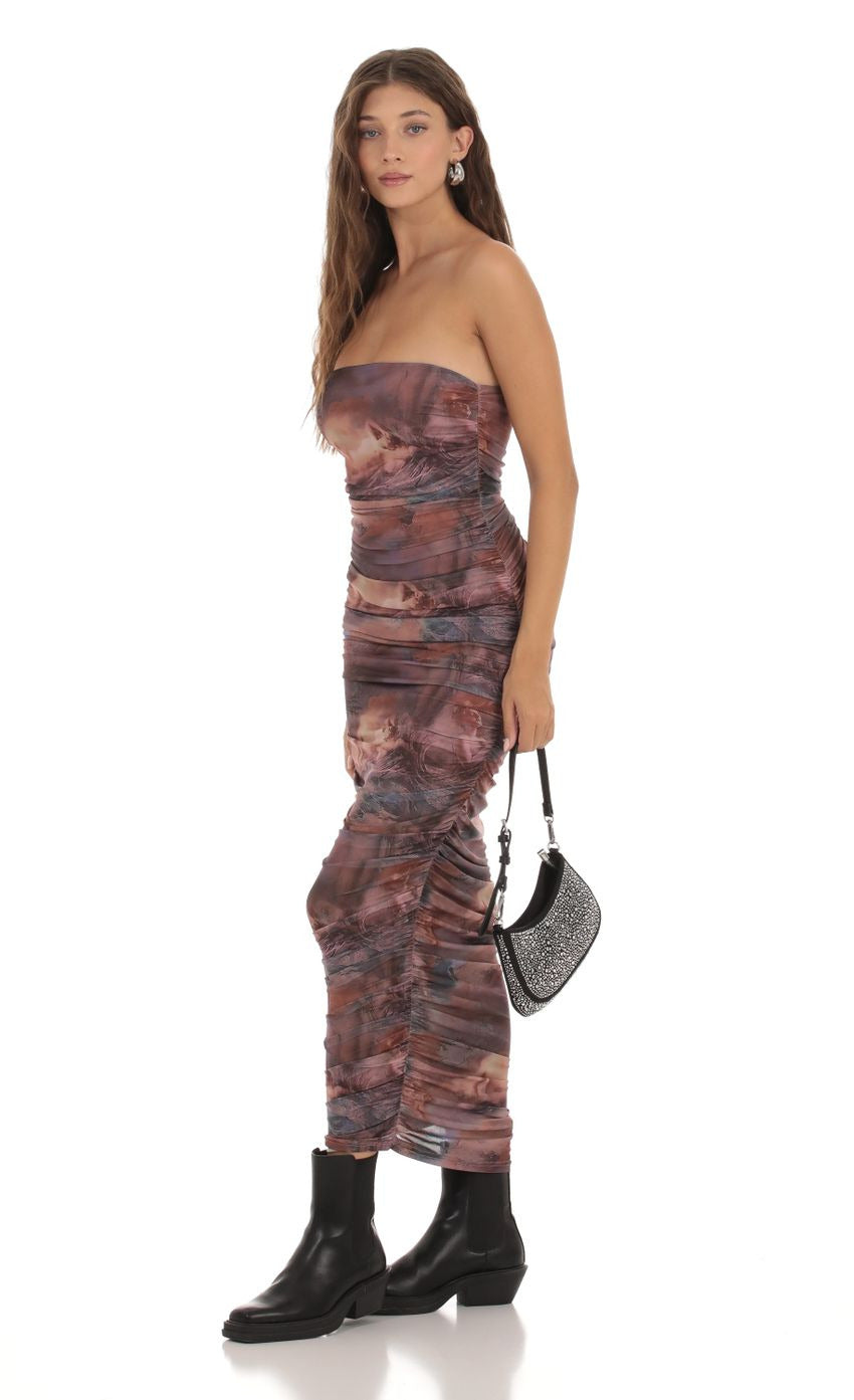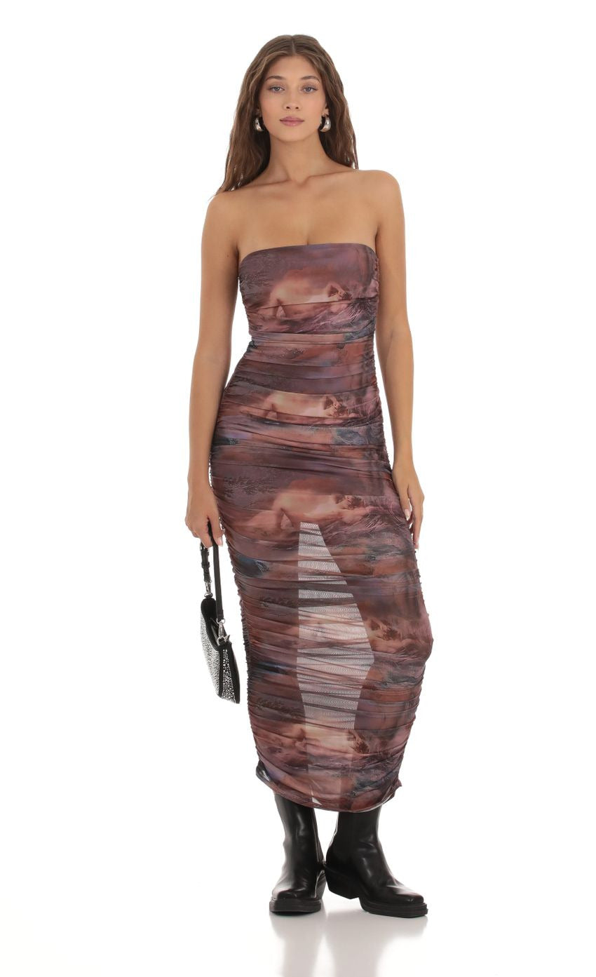 Lucy in the Sky Mesh Print Dress in Purple Blush