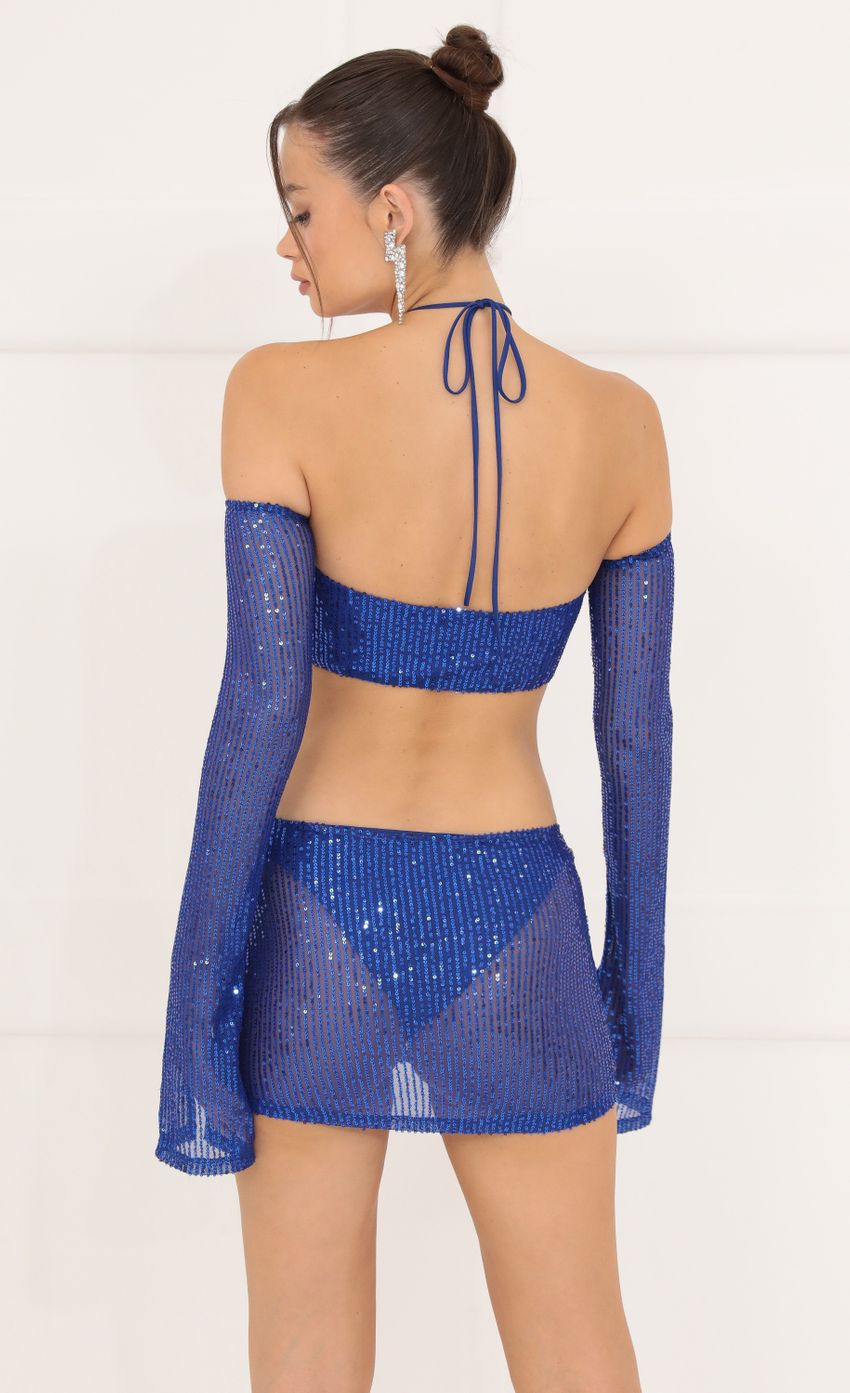 Lucy in the Sky Mesh Sequin Three Piece Set in Blue