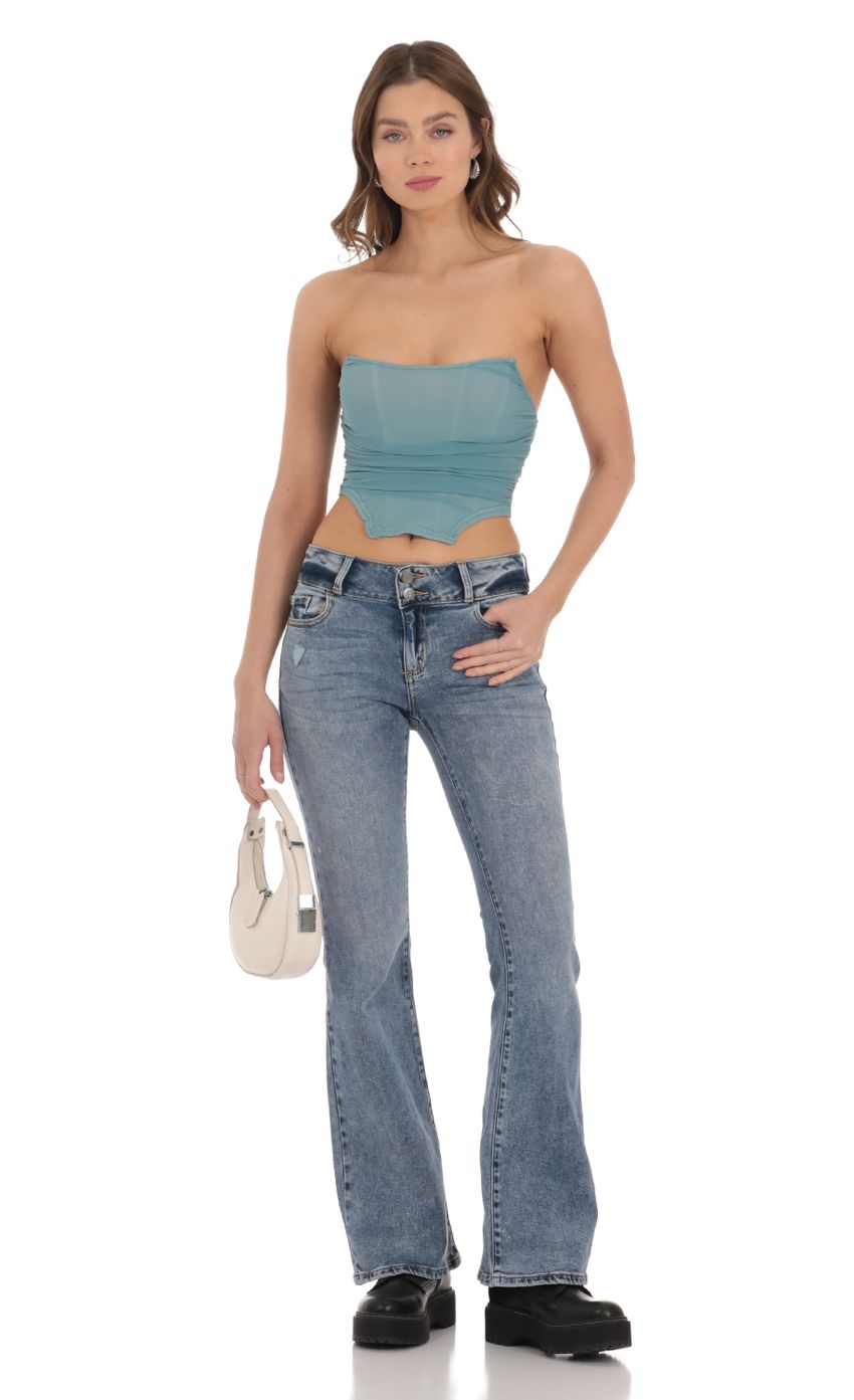 Lucy in the Sky Mesh Strapless Corset Top in Blue (x2)