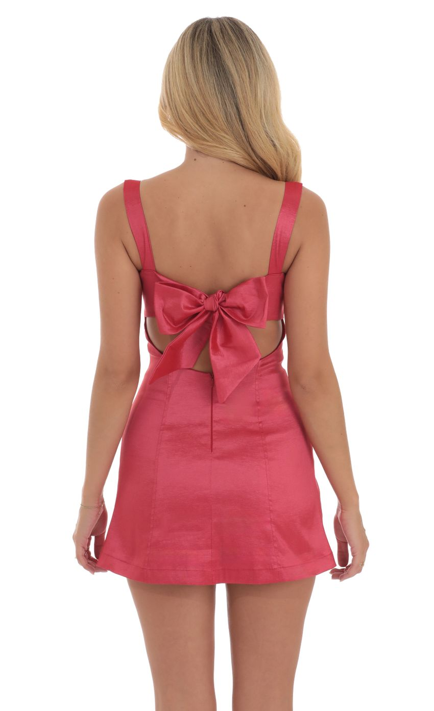Lucy in the Sky Metallic Back Bow Bodycon Dress in Red