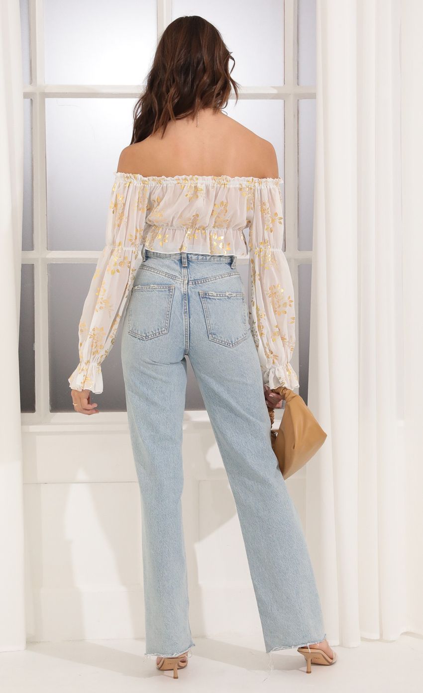 Lucy in the Sky Off Shoulder Top in White and Gold