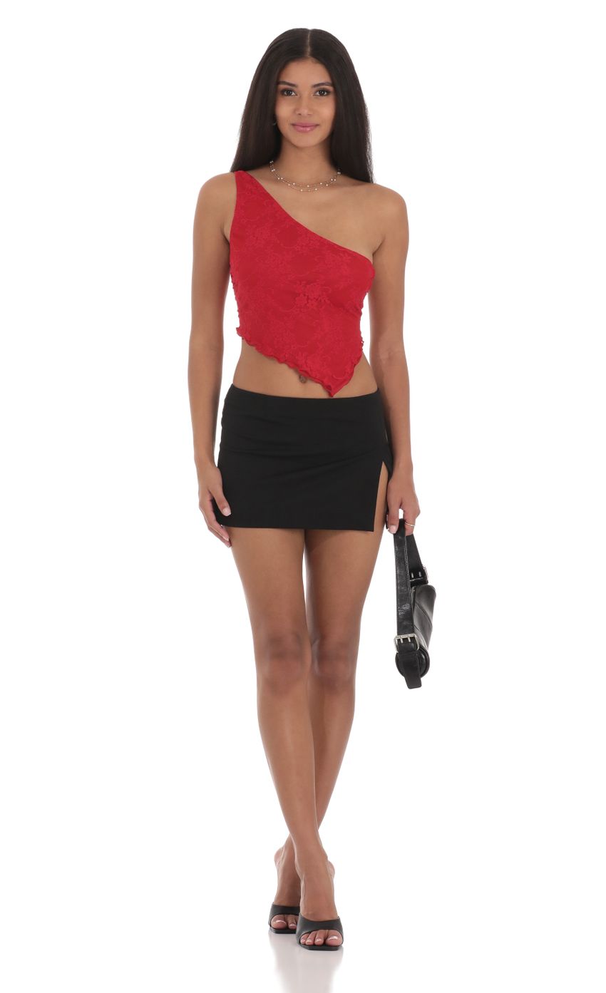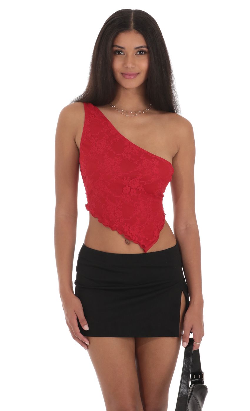 Lucy in the Sky One Shoulder Lace Top in Red