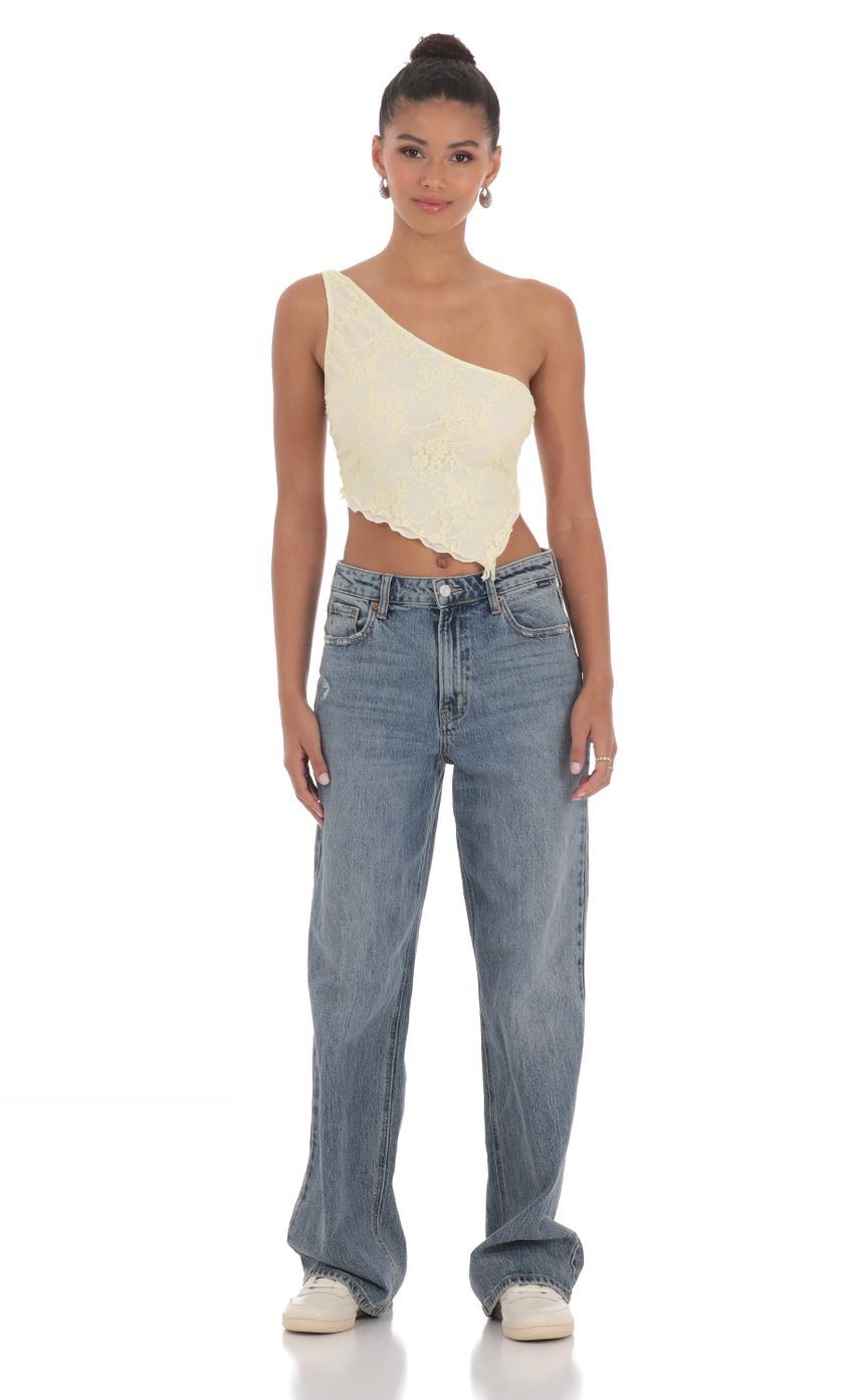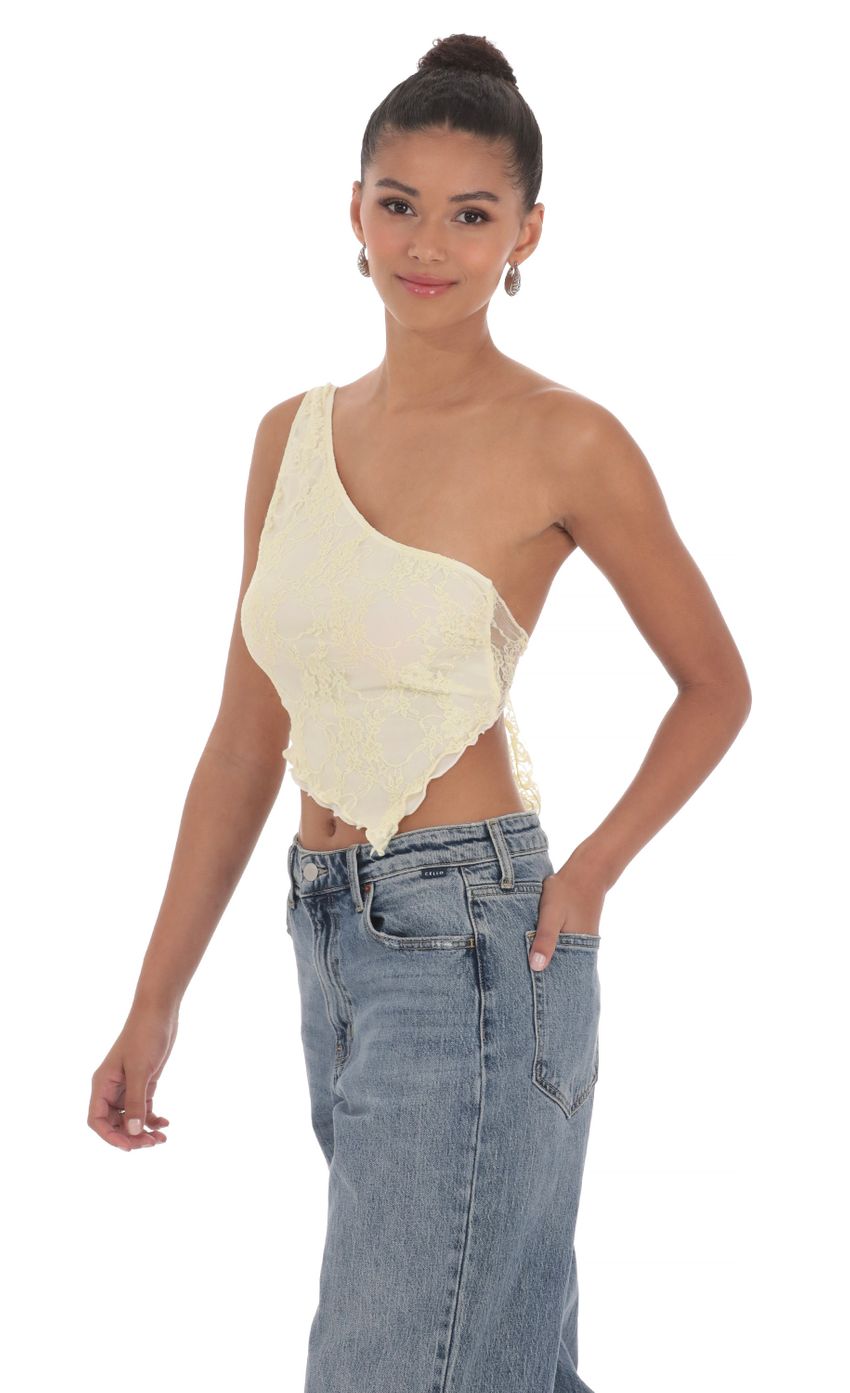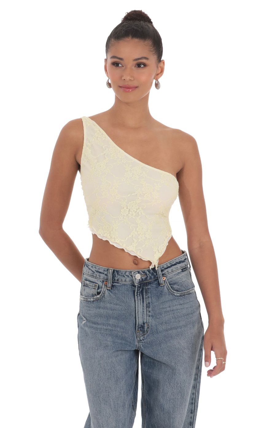 Lucy in the Sky One Shoulder Lace Top in Yellow