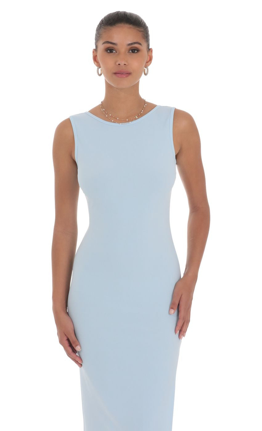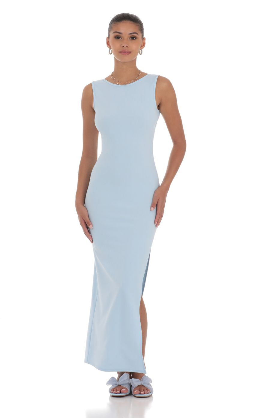 Lucy in the Sky Open Back Bodycon Maxi Dress in Light Blue