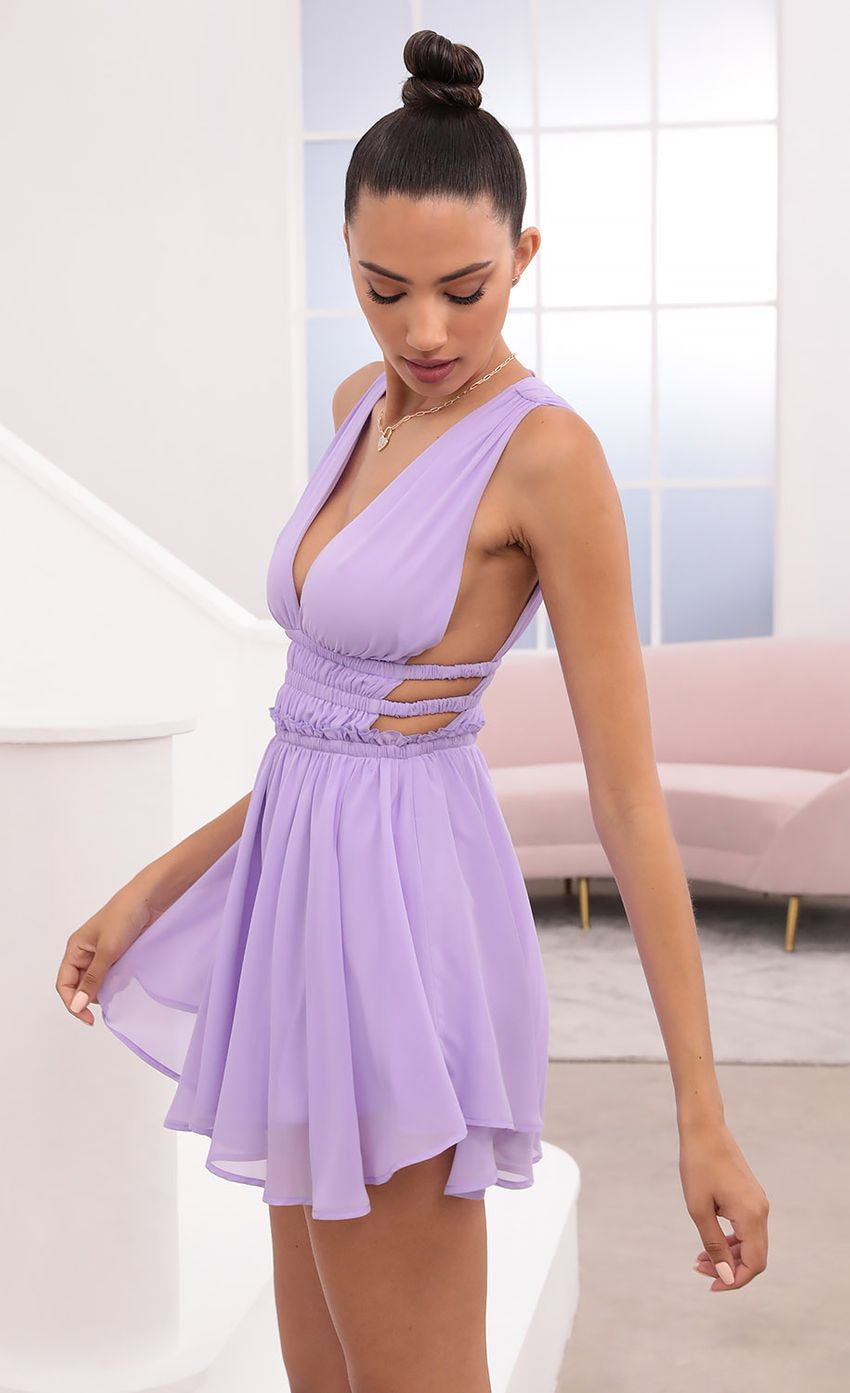 Trending! Slip into an eternal style with this gorgeous white dress! This ensemble is a flattering fashion favorite with its deep V neck and side cuts. Add long necklaces to show off its deep cut! It gathers and synches with two ties in the front to perfect your figure. Move all night long to show off the eye-catching flowy fabric in this piece!