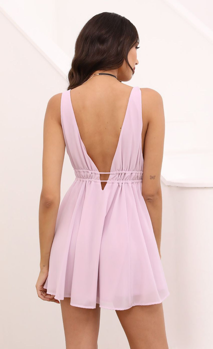 Trending! Slip into an eternal style with our newest Svana dress in lavender! This ensemble is a flattering fashion favorite with its deep V back AND neck cut. Add long necklaces to show off its deep cut! It gathers and synches with two ties in the front to perfect your figure. This dress is our definition of the perfect summer dress!