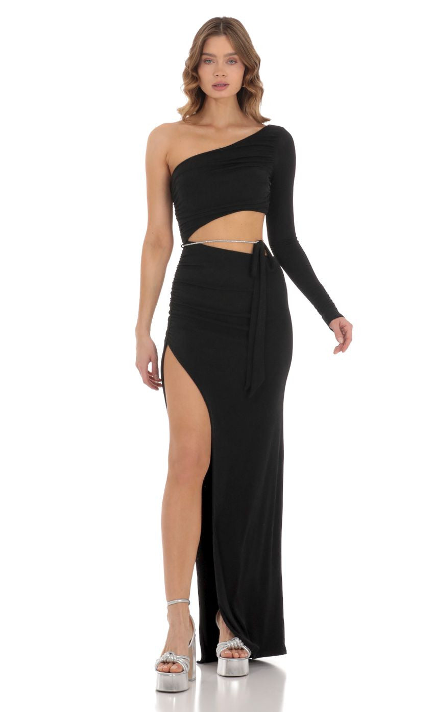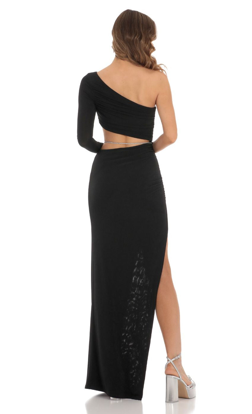 Lucy in the Sky Rhinestone Wrap Cutout Maxi Dress in Black