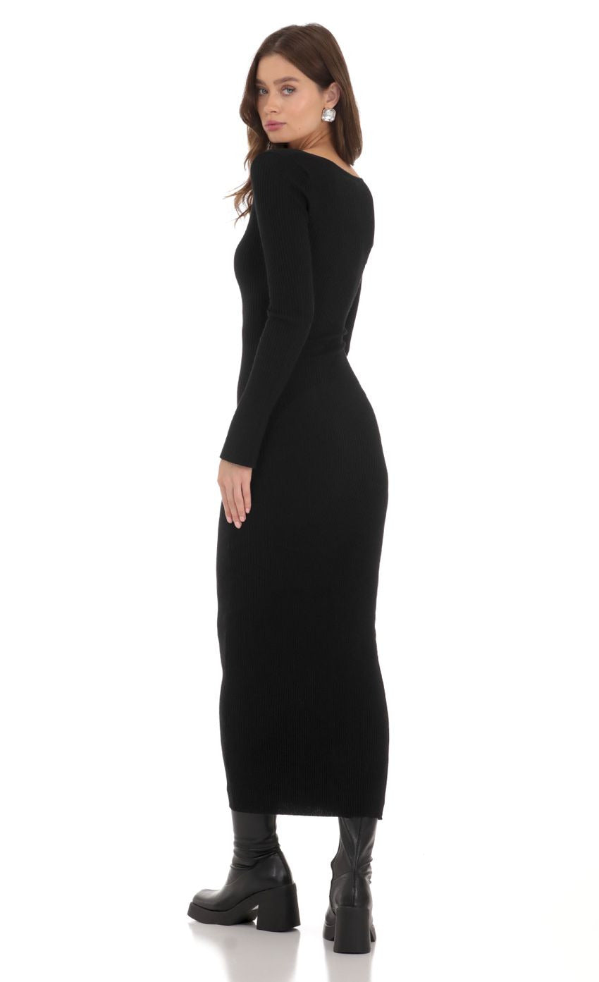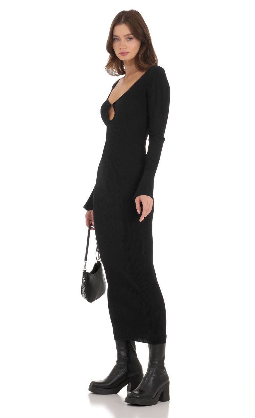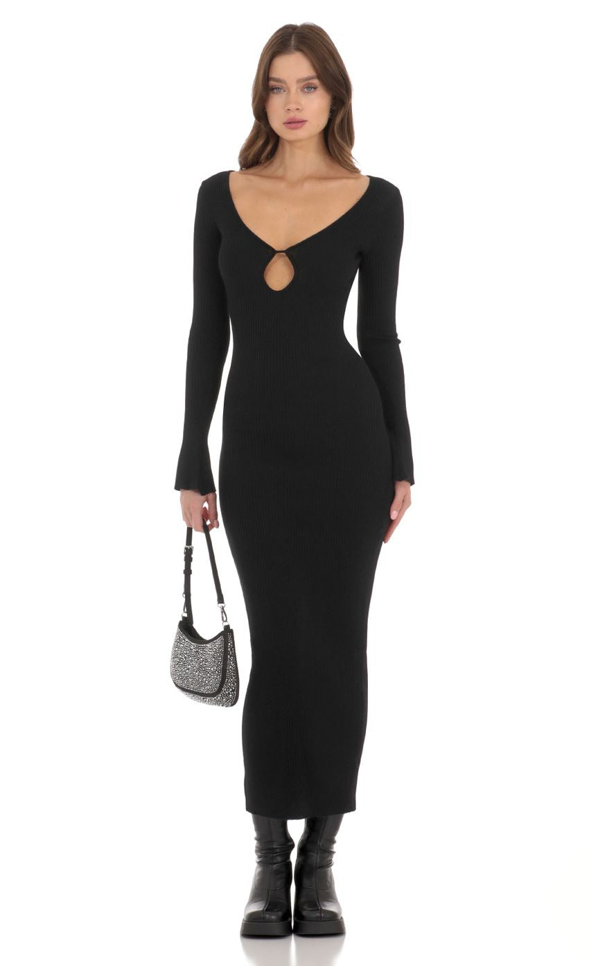 Lucy in the Sky Ribbed Cutout Dress in Black
