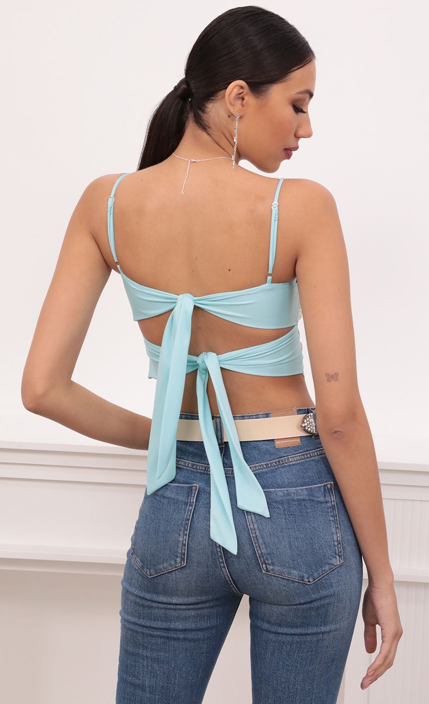 Lucy in the Sky Roma Top in Aqua and Off White Lace