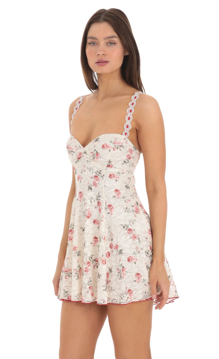Lucy in the Sky Roses Lace Fit and Flare Dress in White