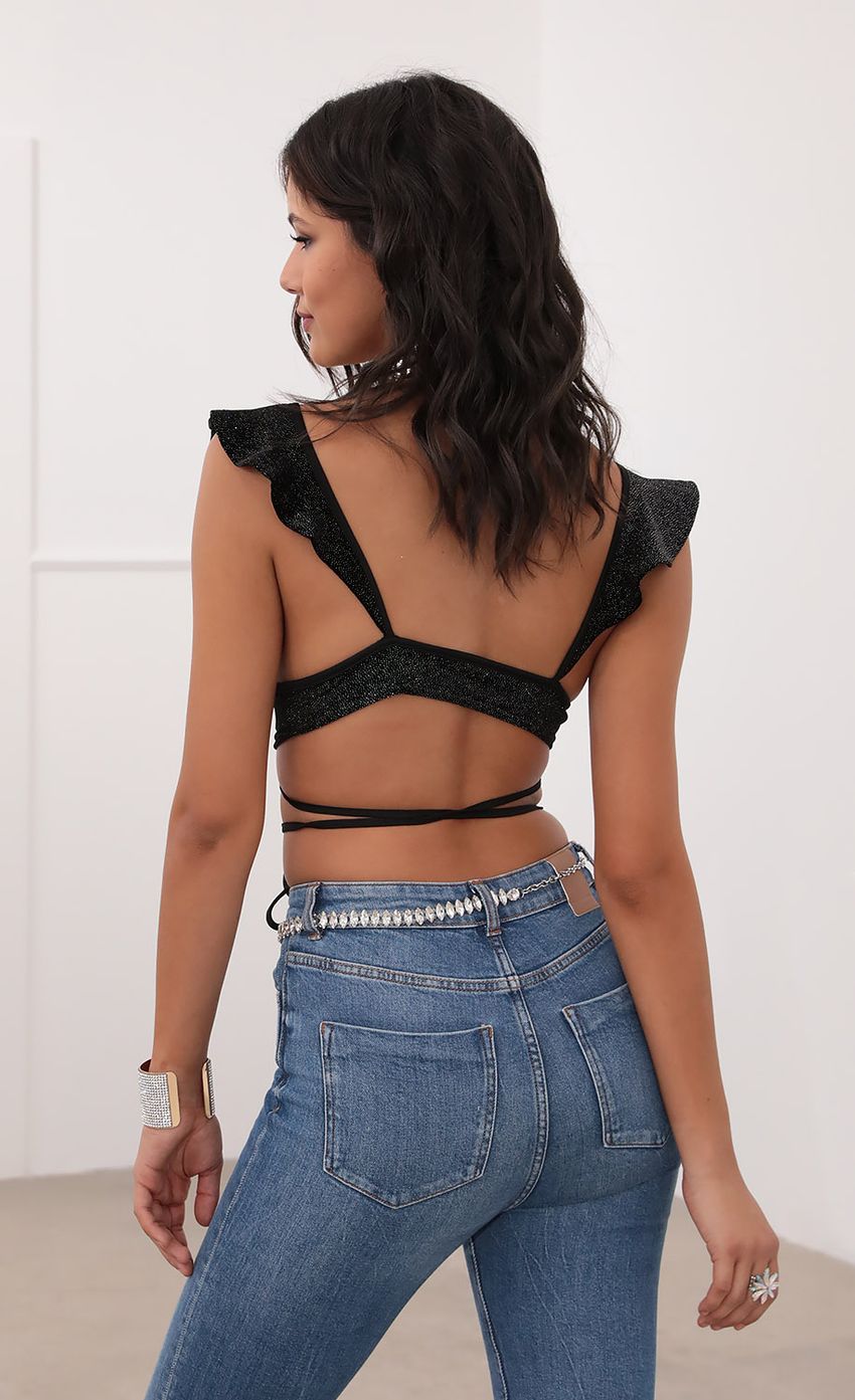 Lucy in the Sky Ruffle Crop Top in Black Velvet