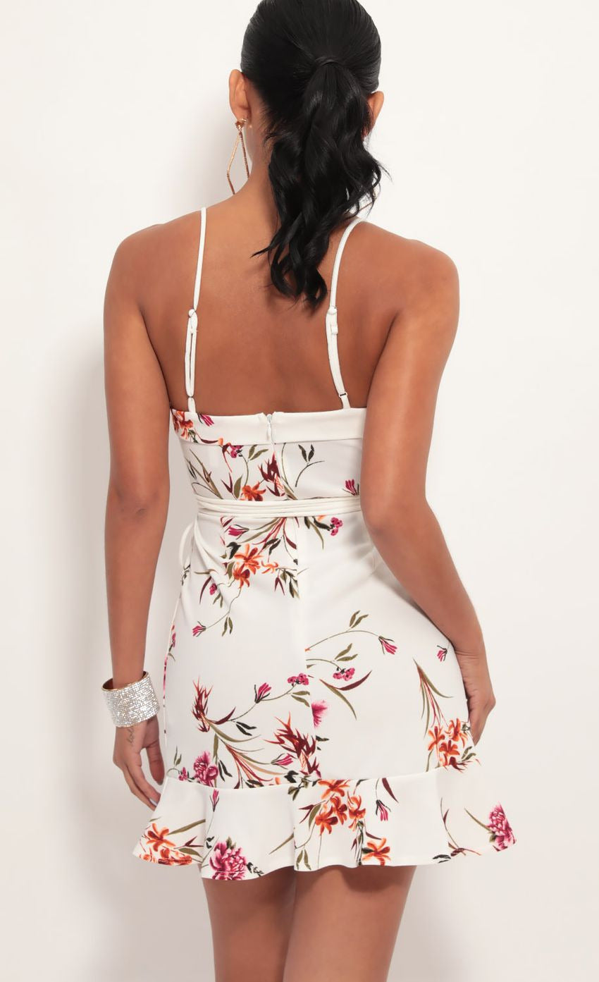 All eyes on you in this classy ruffle dress. This sultry figure-hugging mini was carefully crafted with flirty ruffles, adjustable straps and waist tie. Designed to show off some killer curves, Lucy Babes!