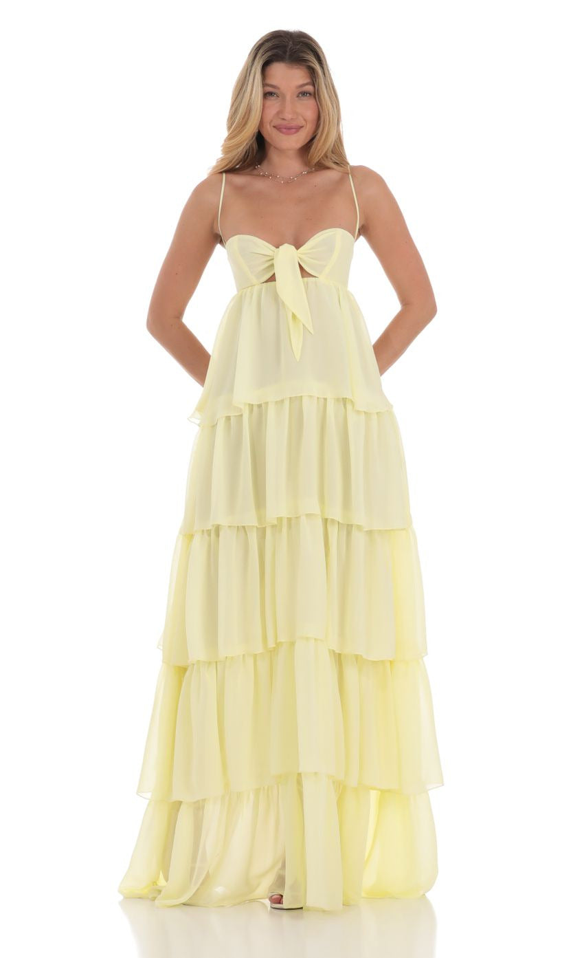 Lucy in the Sky Ruffle Front Tie Maxi Dress in Yellow