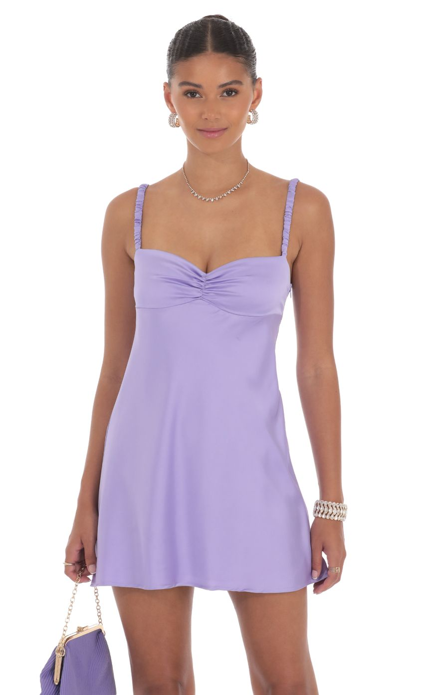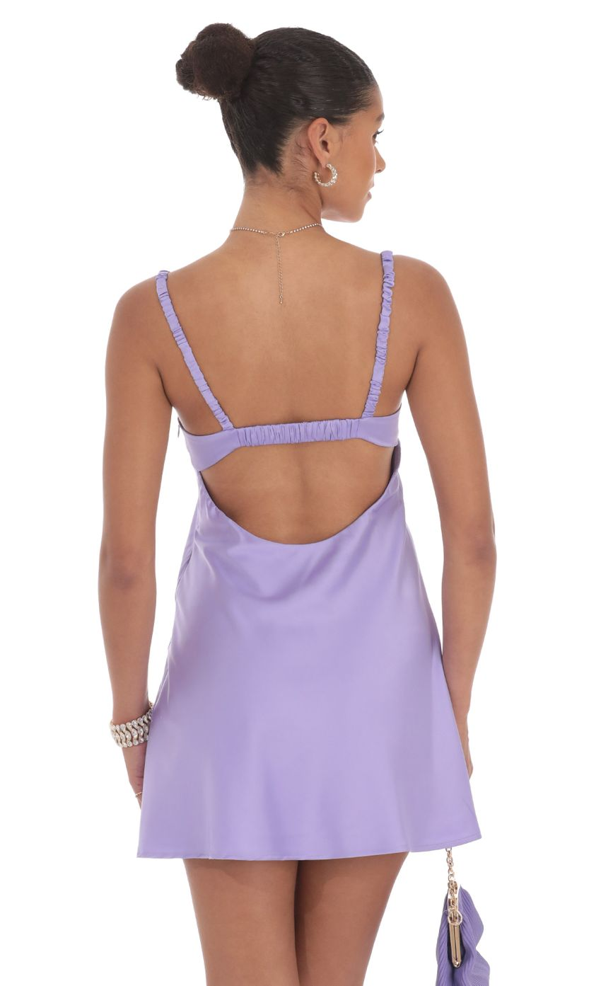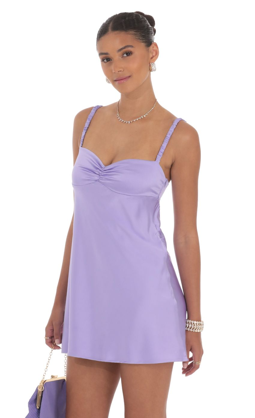 Lucy in the Sky Satin Babydoll Dress in Purple