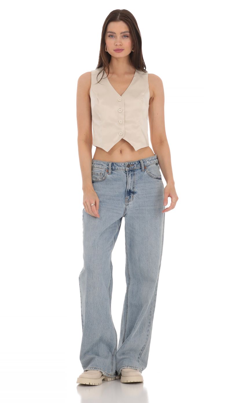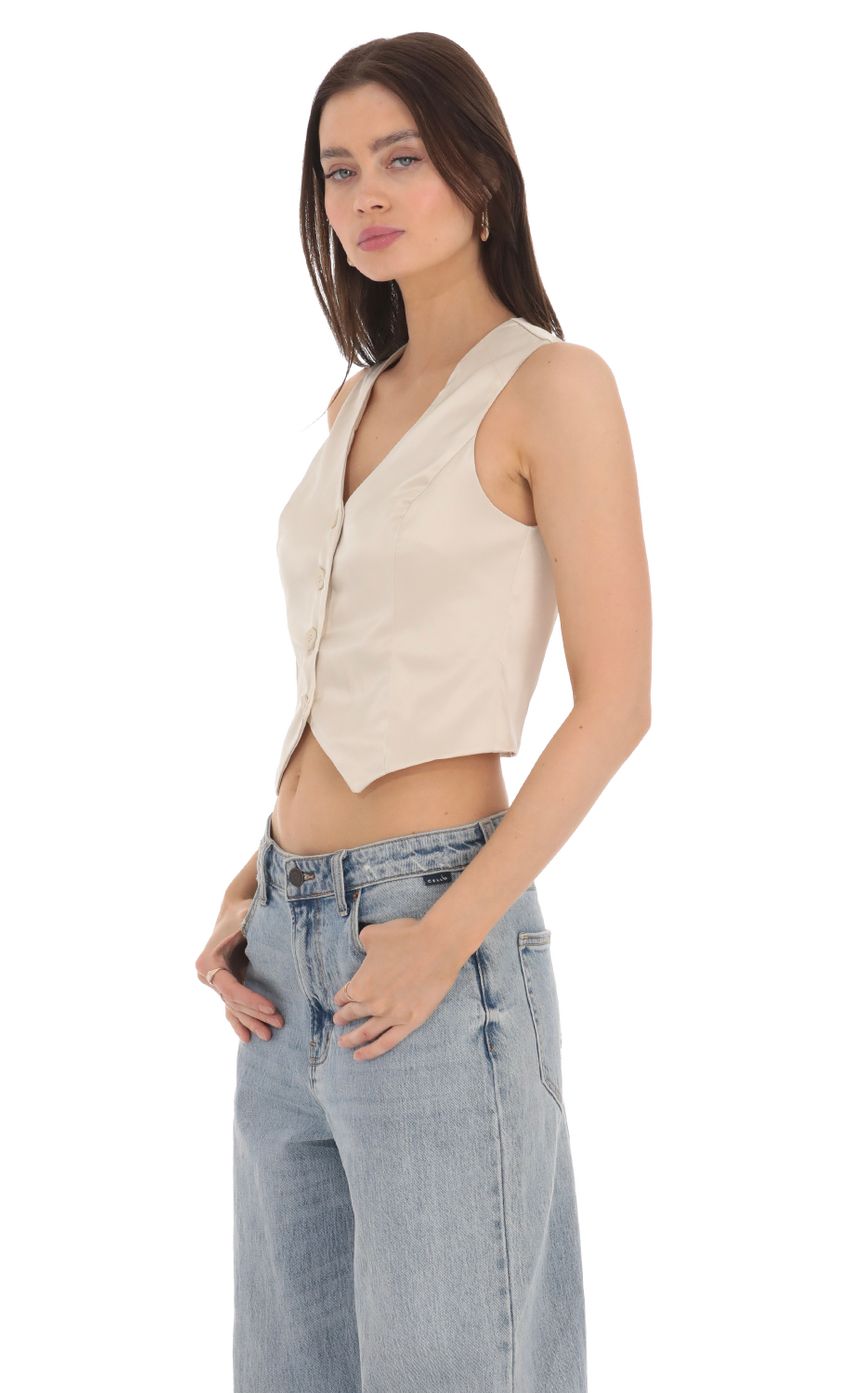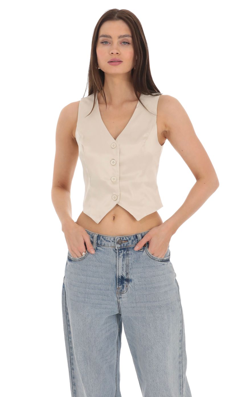 Lucy in the Sky Satin Button Vest Top in Cream