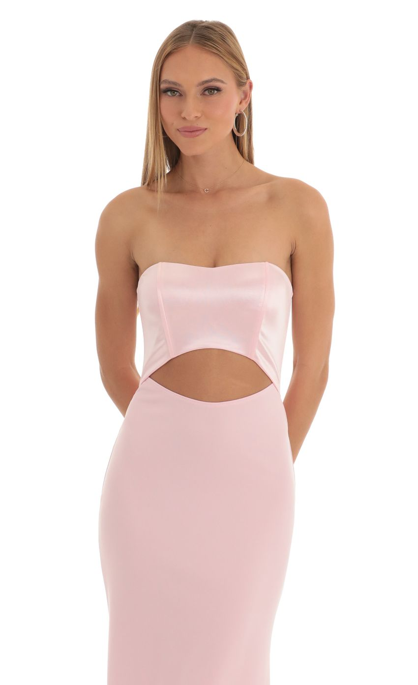 Lucy in the Sky Satin Corset High Low Crepe Maxi Dress