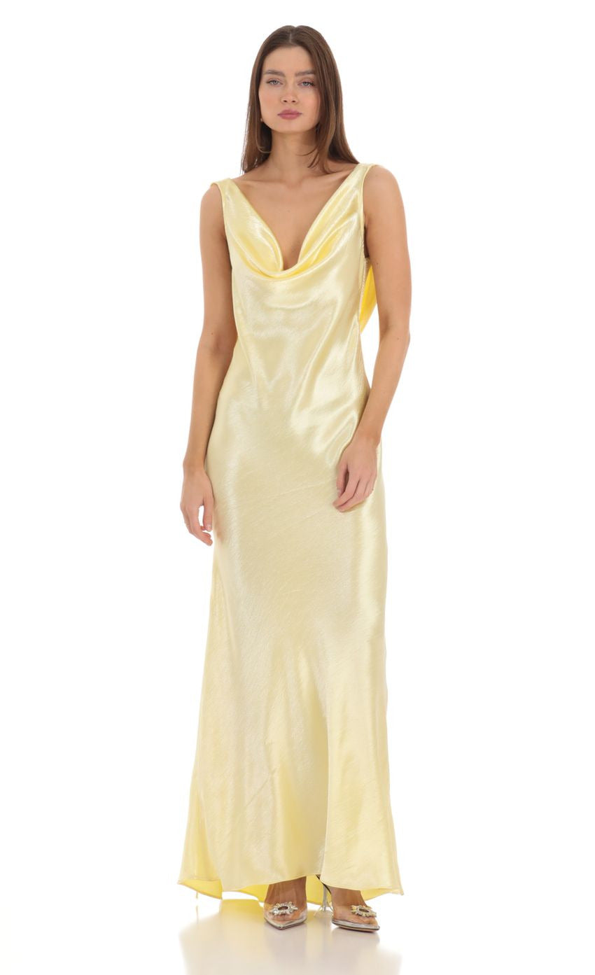 Lucy in the Sky Satin Cowl Neck Maxi Dress