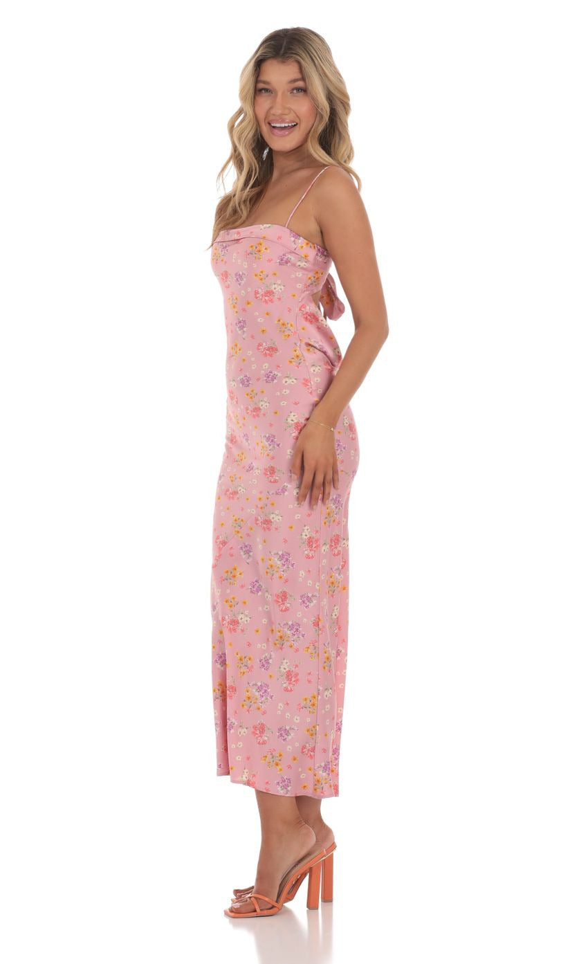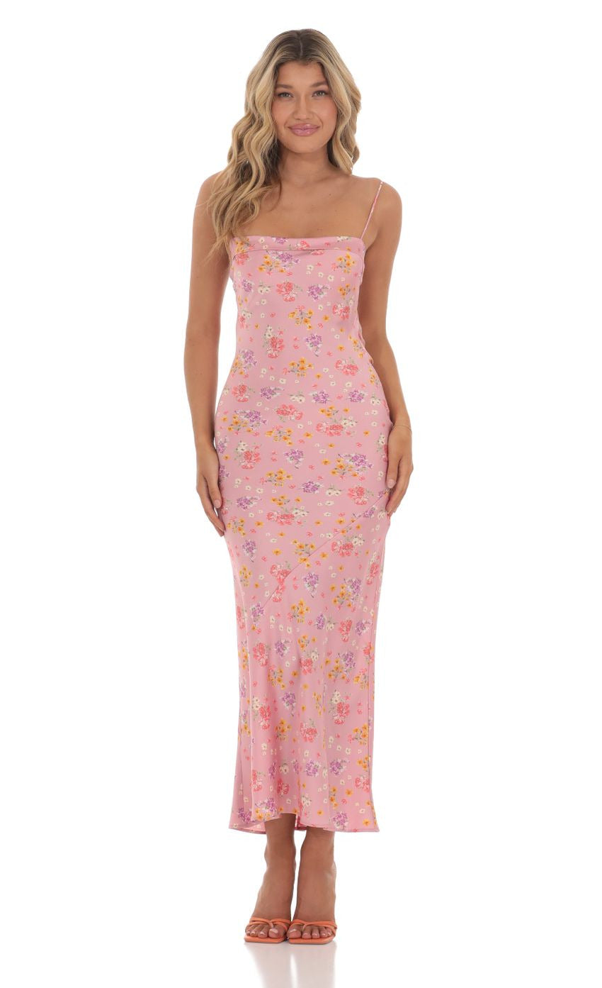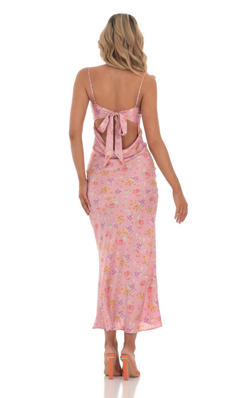 Lucy in the Sky Satin Floral Open Back Maxi Dress in Pink