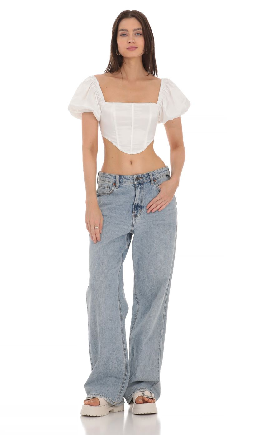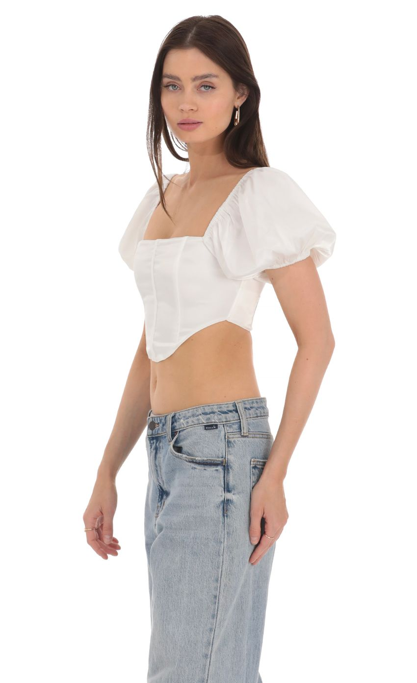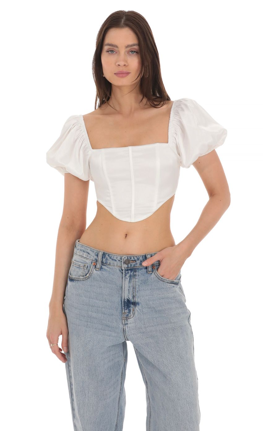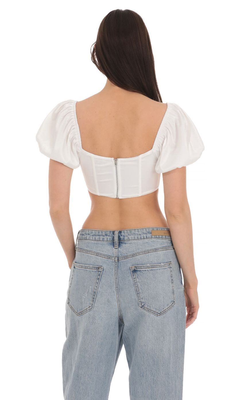 Lucy in the Sky Satin Puff Sleeve Corset Top in White