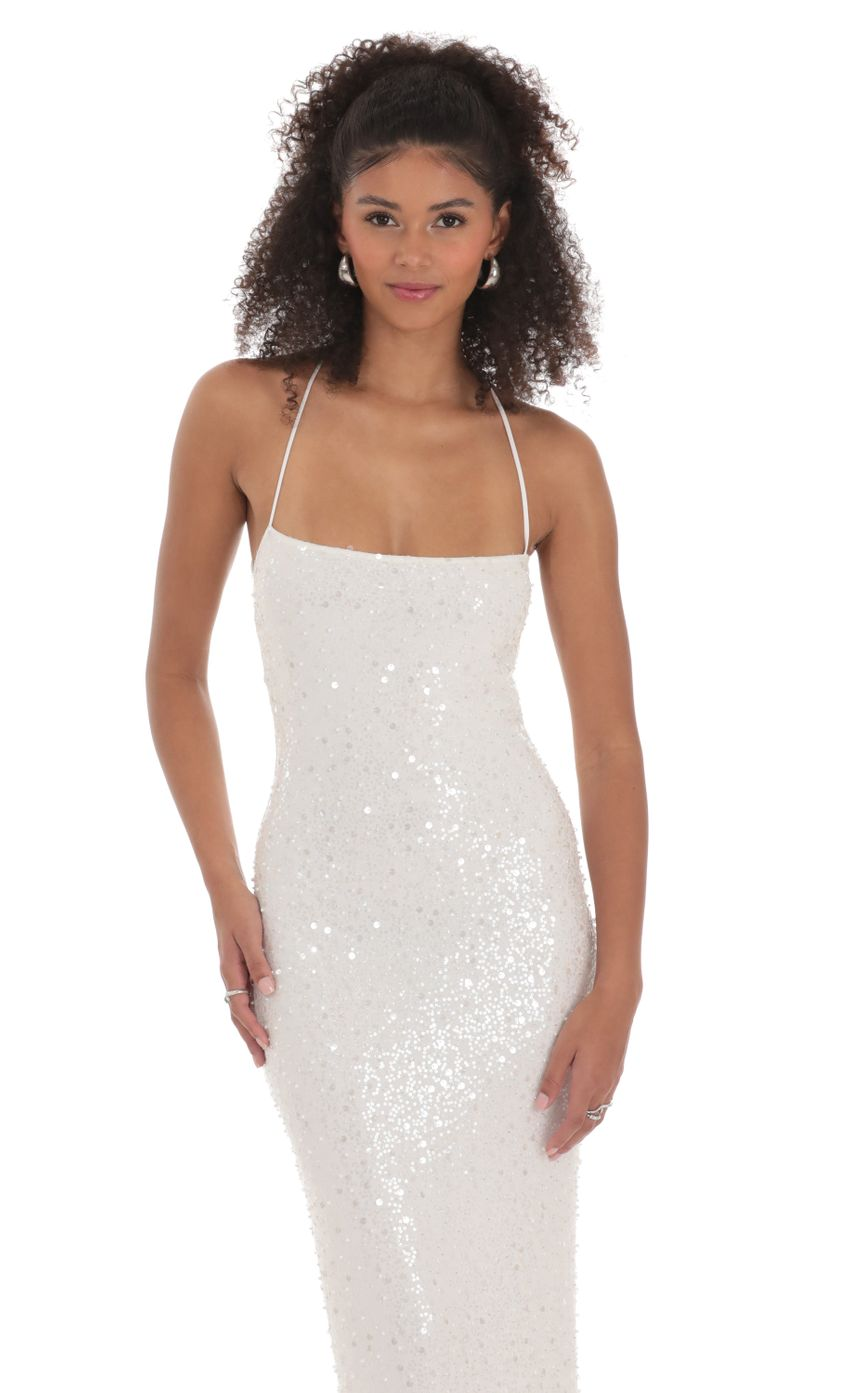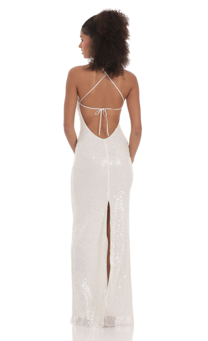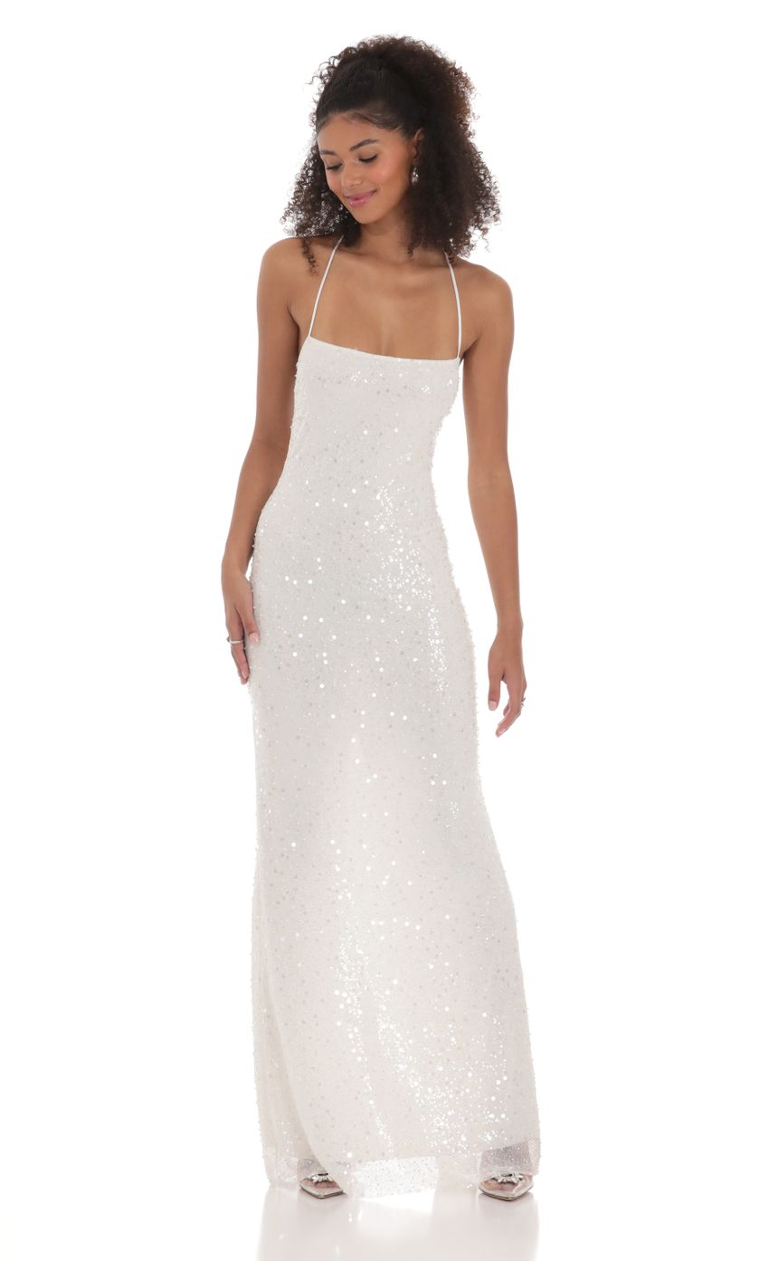 Lucy in the Sky Sequin Mesh Maxi Dress in White