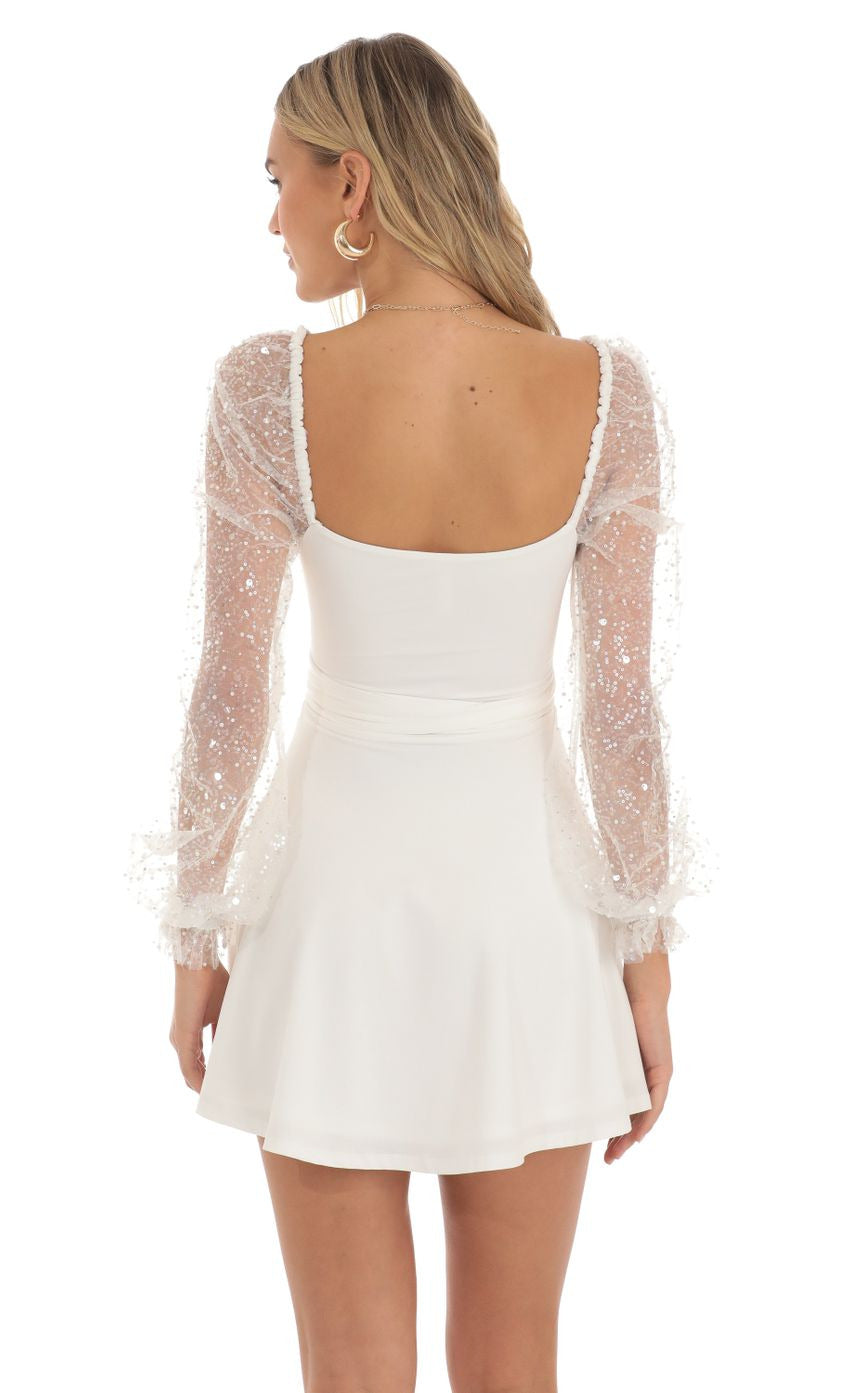 Lucy in the Sky Sequin Puff Wrap Dress in White