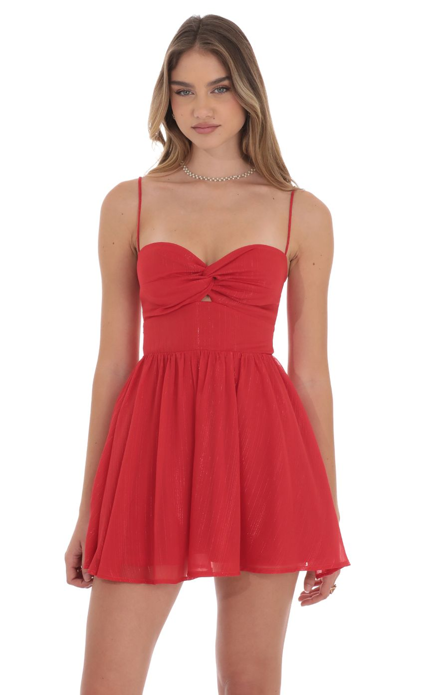 Lucy in the Sky Shimmer Front Twist A-line Dress