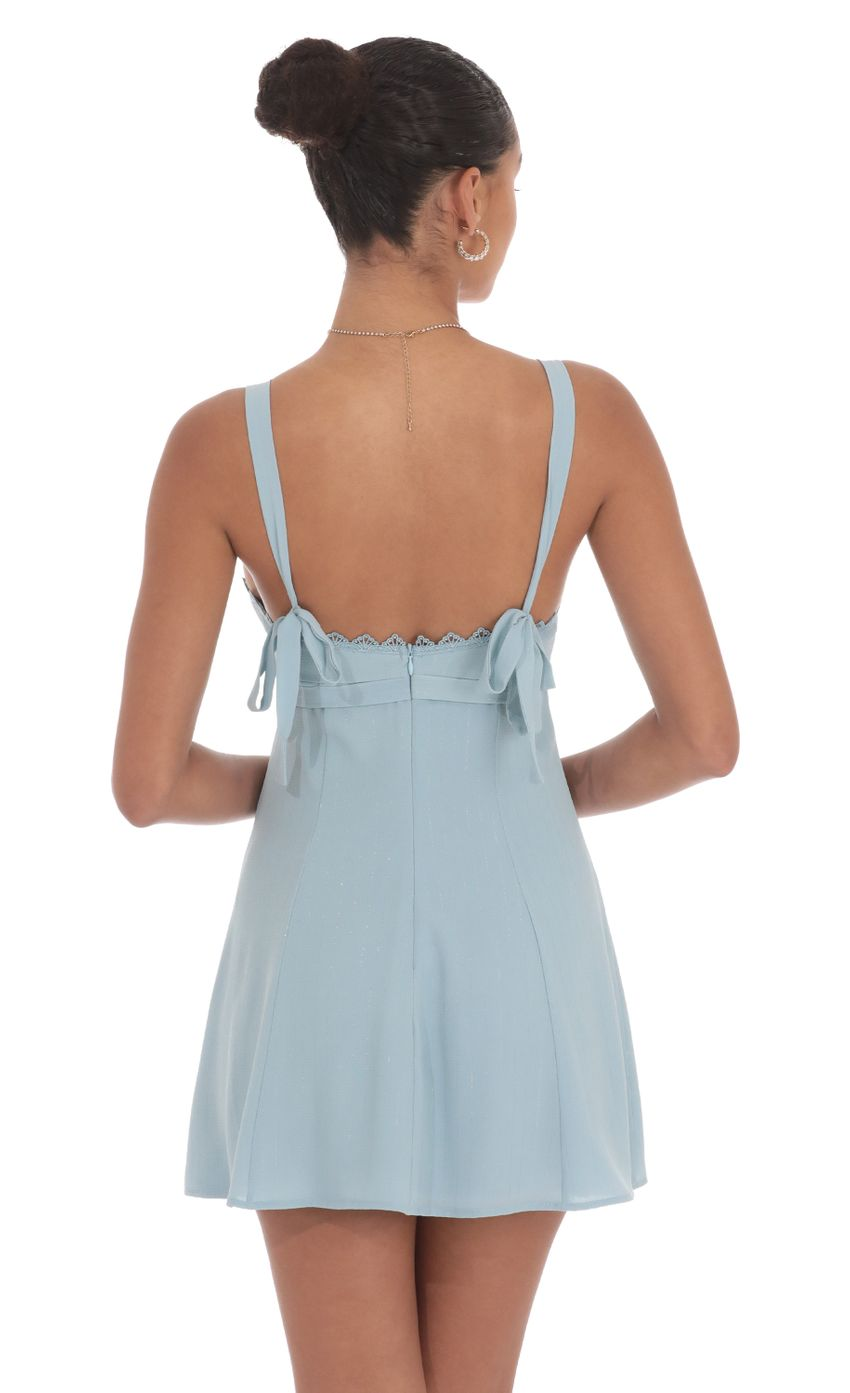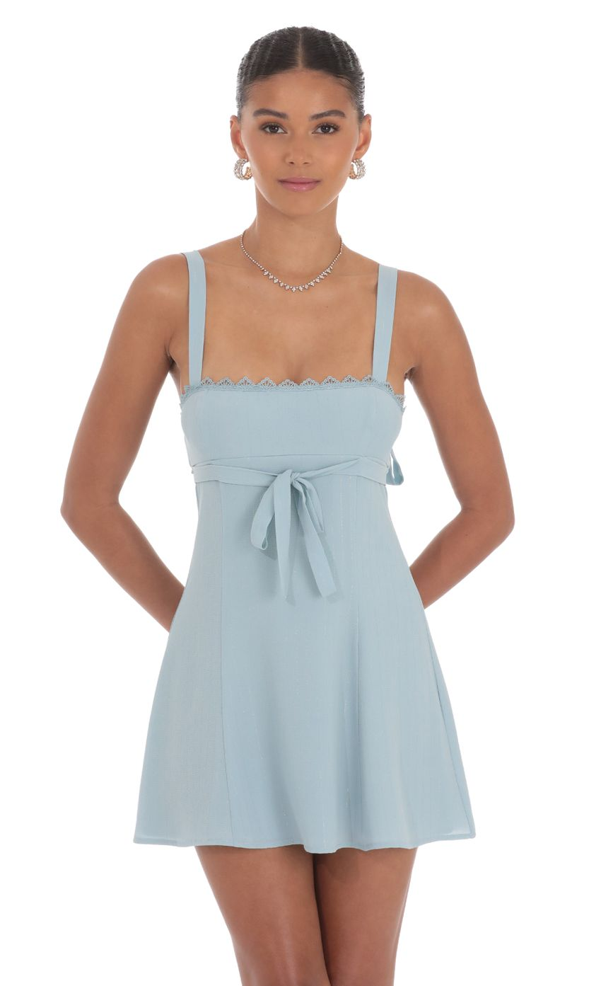 Lucy in the Sky Shimmer Ribbon Embroidered Trim Dress in Blue