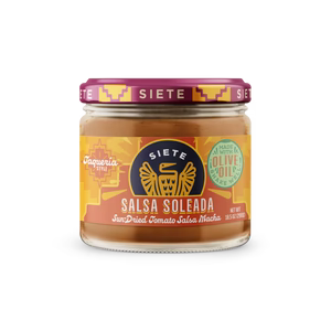 Made with distinctive ingredients like olive oil and sun-dried tomatoes, this adventurous Salsa Soleada is flavorful, rich, and bright. (After all, “soleada” means “sunny!”) It’s a salsa with a thicker texture that’s perfect for drizzling, pouring, and spooning on top of all your favorite foods—from tacos and enchiladas to burrito bowls and flautas. Plus it tastes great with tortilla chips, too! Think of it as your salsa sol-mate.