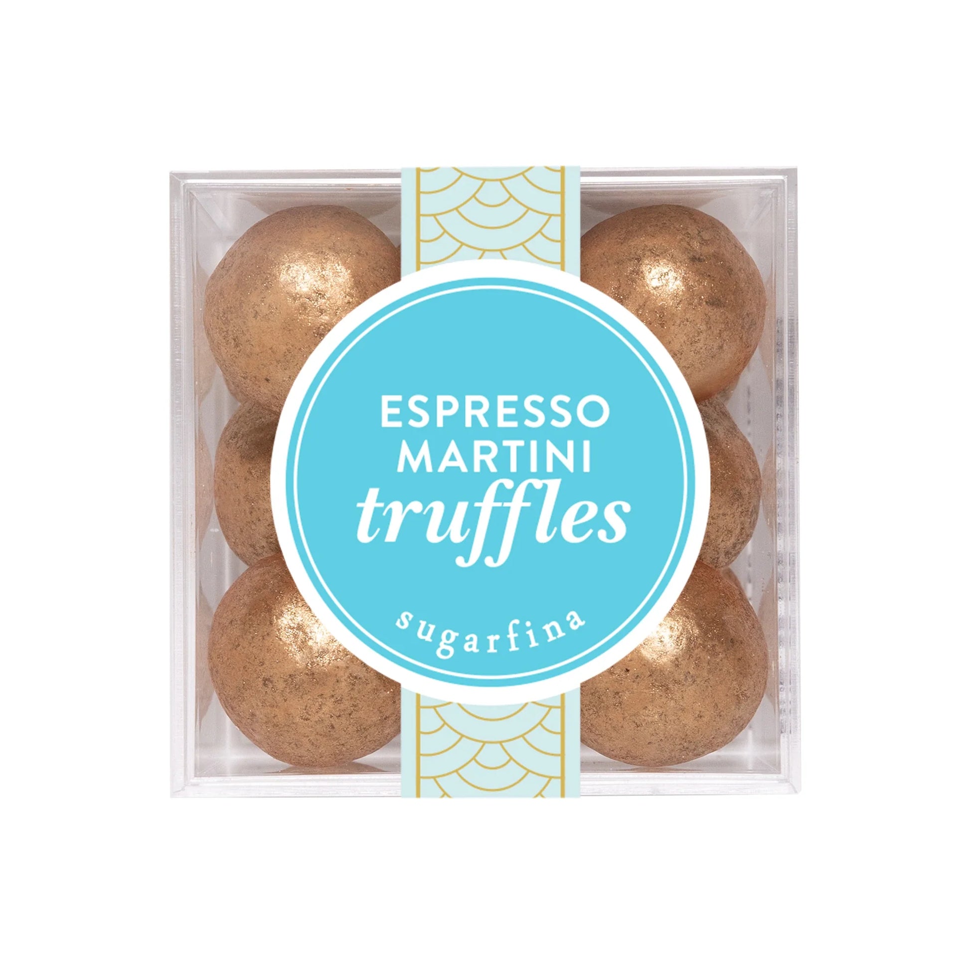You…Me…Espresso Martini! Rich and creamy chocolate truffles are infused with vodka and coated in shimmery gold chocolate.