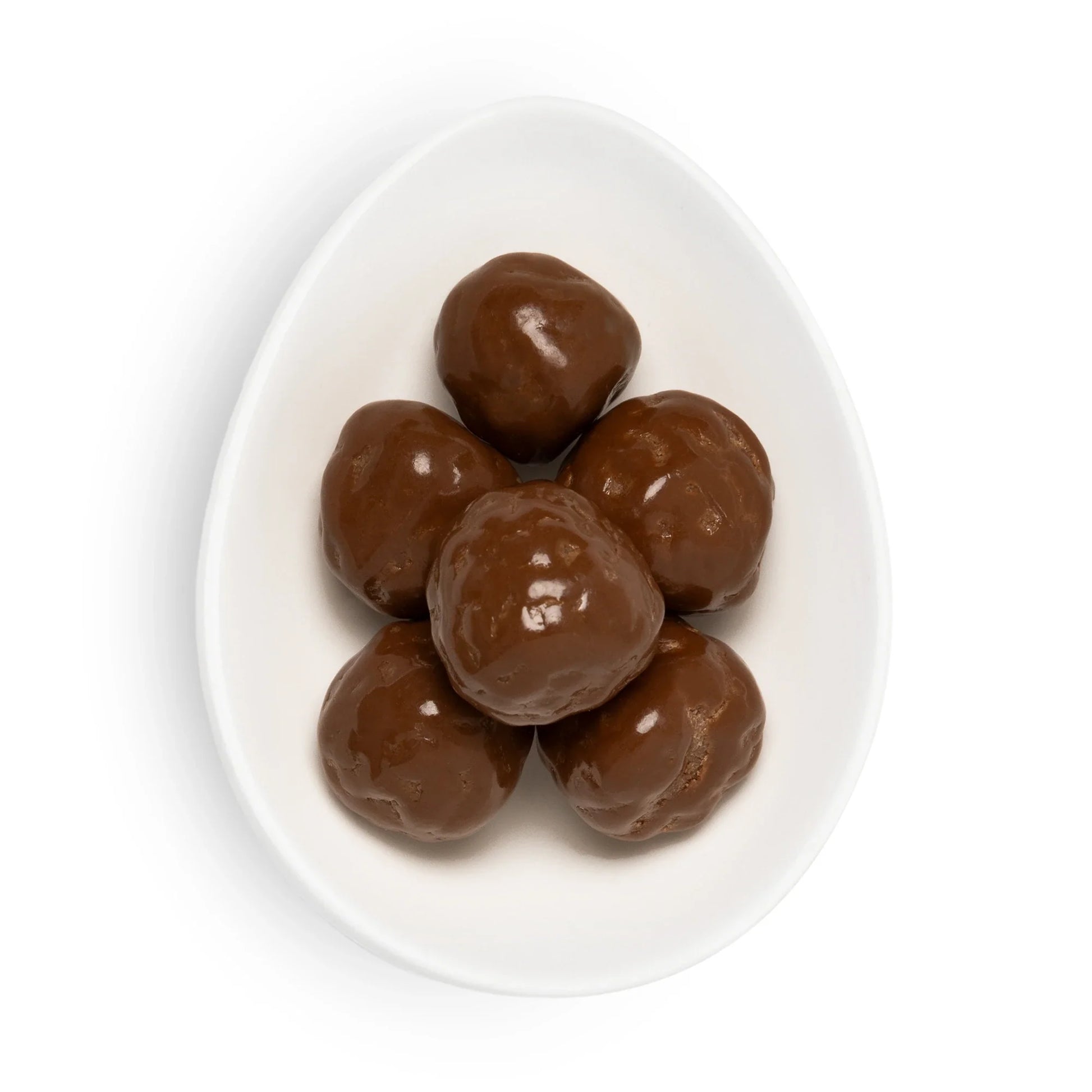 10 Rum Cordials: Life is better with rum! Bite into these rich chocolate shells sprinkled with coconut shavings to find a rum center.