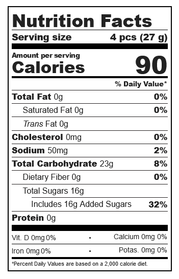Corn Syrup, Sugar, Modified Food Starch, Malic Acid, Contains 2% or Less of the Following: Sodium Citrate, Natural & Artificial Flavors, Color (Red 40)